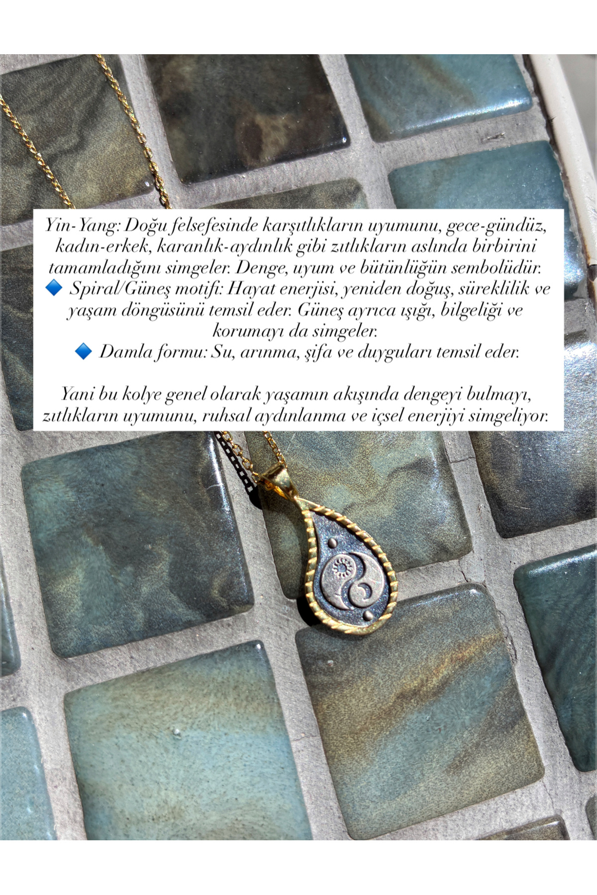 Yani bu kolye genel olarak yaşamın akışında dengeyi bulmayı, zıtlıkların uyumunu, ruhsal aydınlanma ve içsel enerjiyi simgeliyor.