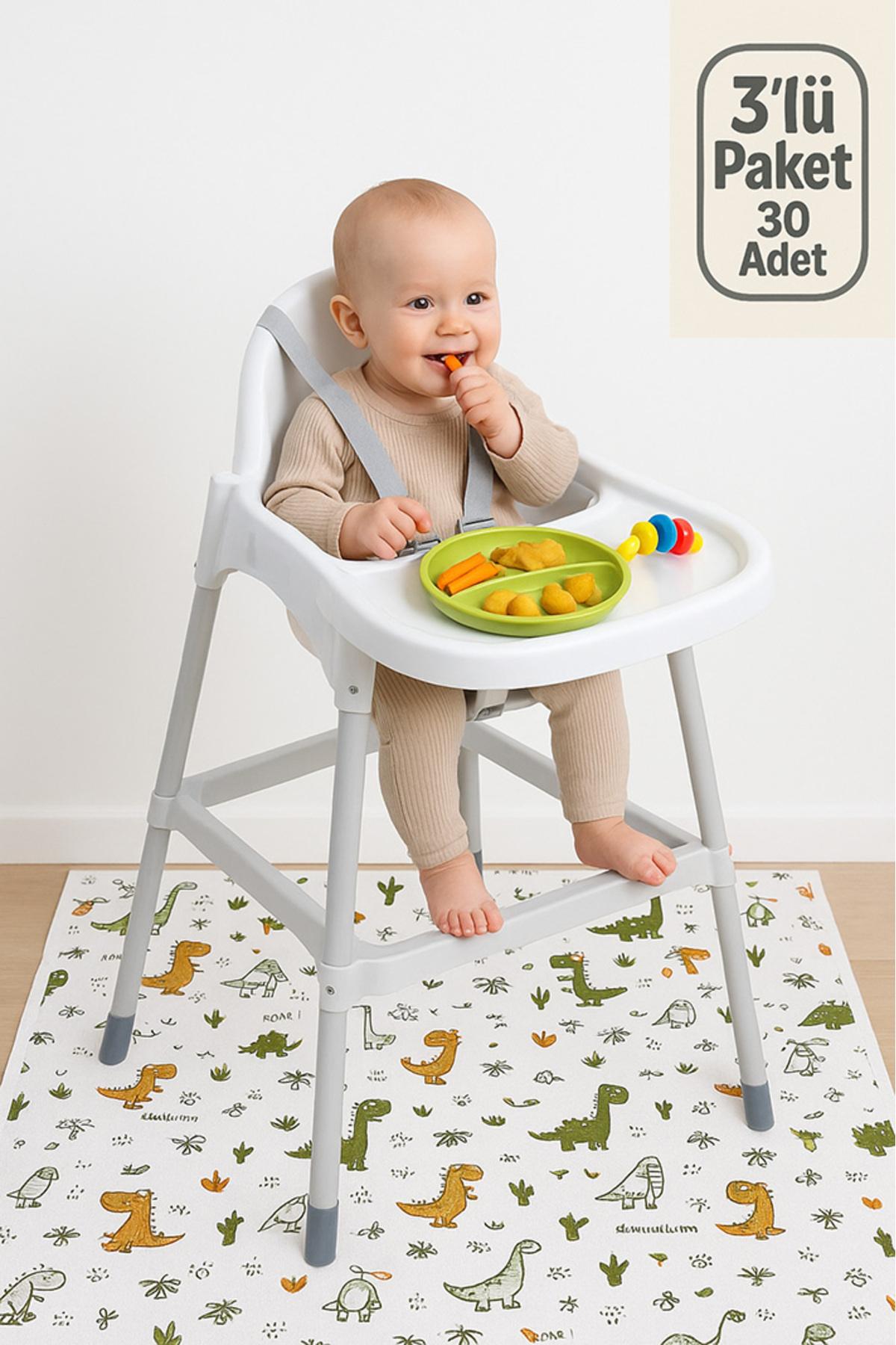 Safemom Mama Sandalyesi Altı Ve Aktivite Örtüsü 3 Rulo 30Adet - Sevimli Dinazorlar