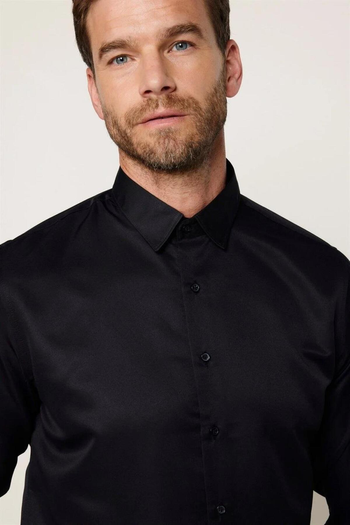 2'li Paket Siyah Slim Fit Kolay Ütü Teri Emen Nefes Alan Doku Dört Mevsim Erkek Gömlek