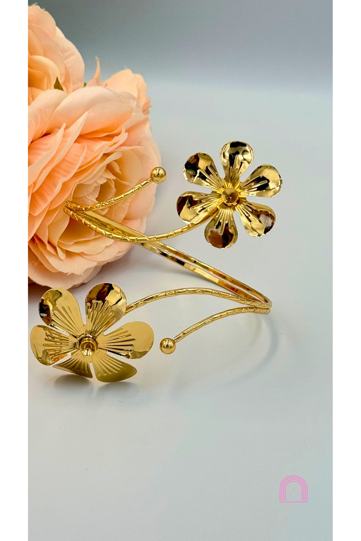 Gold Renk Çiçek Detay Kol Aksesuarı Pazu Bilekliği