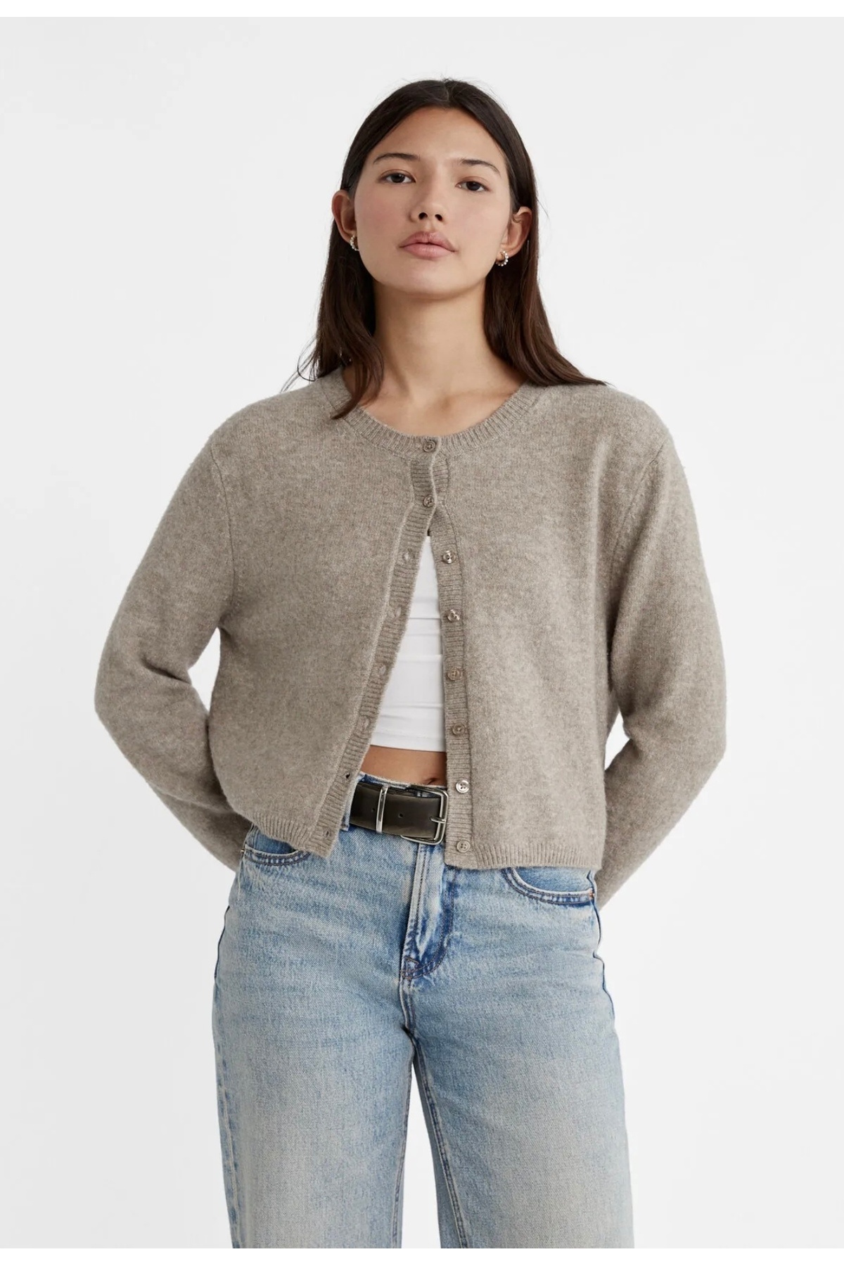 Basic Düğmeli Vizon Kadın Triko Hırka