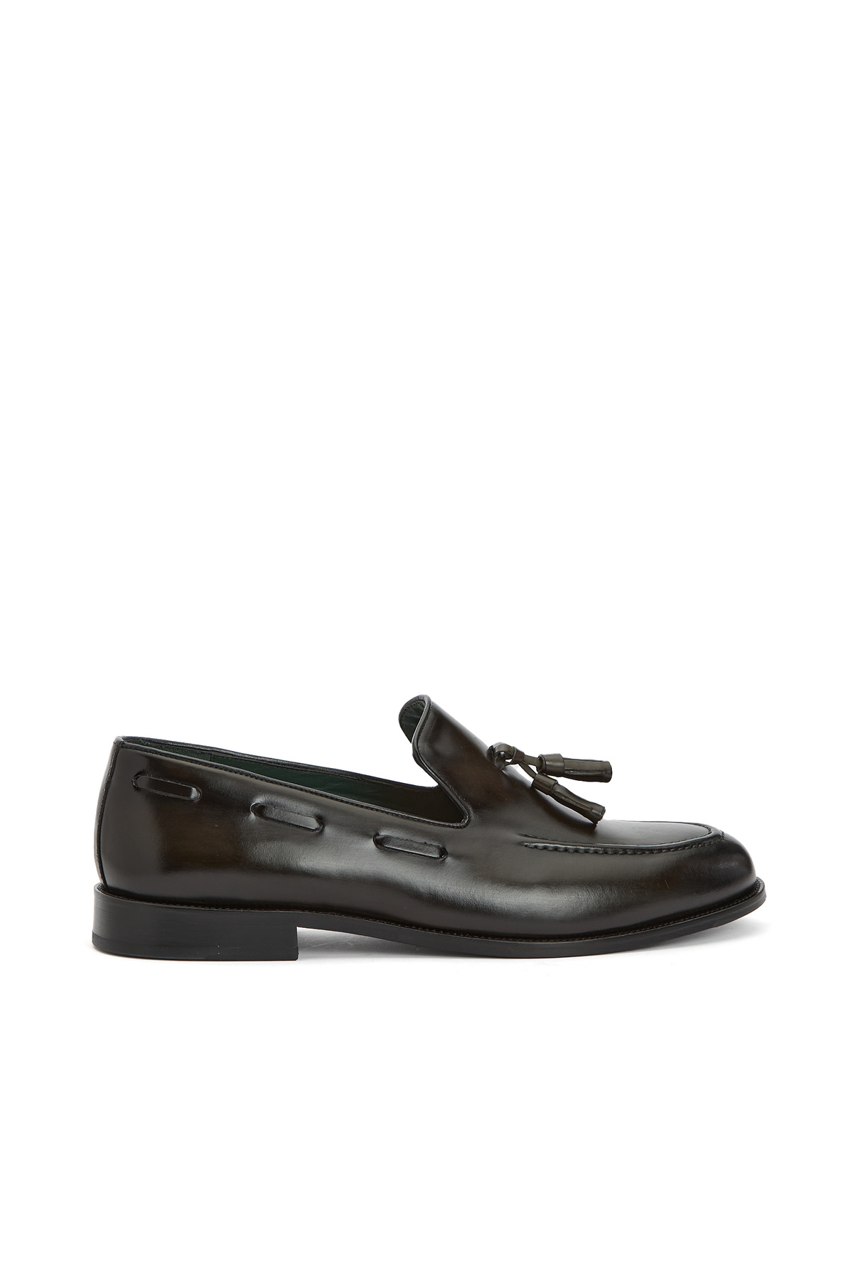 Icons Haki Erkek %100 Deri Yuvarlak Burun Kösele Tabanlı Loafer