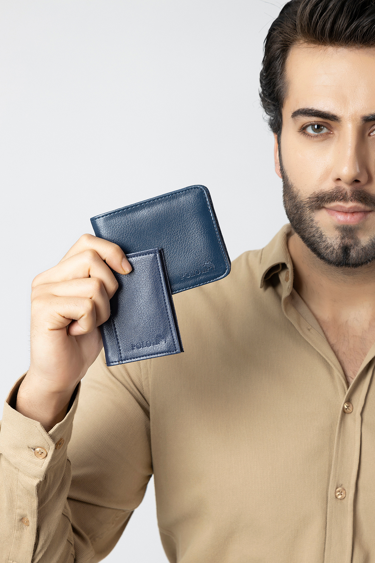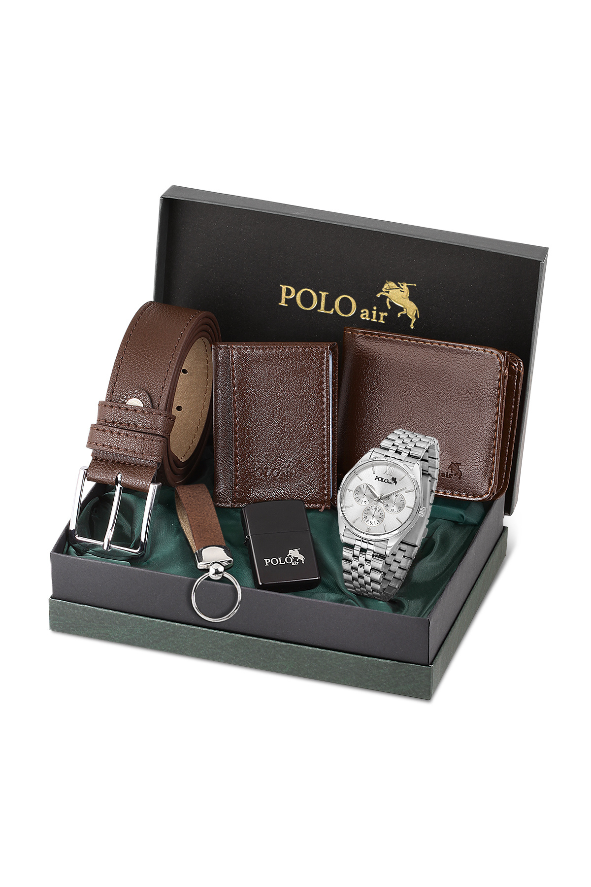 Klasik Cüzdan Kemer Kartlık Çakmak Anahtarlık Erkek Kol Saati Set Gümüş Mavi Renk PL-7024E2