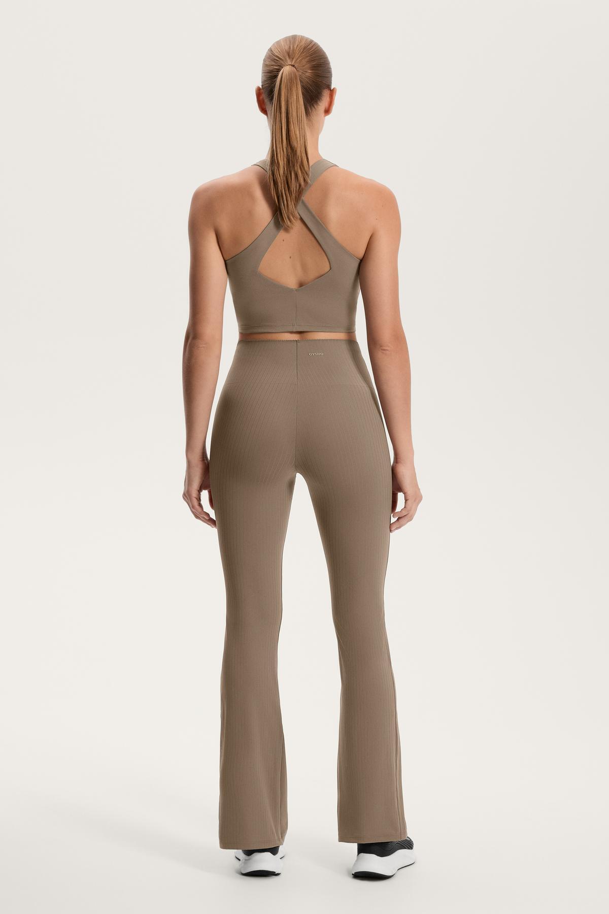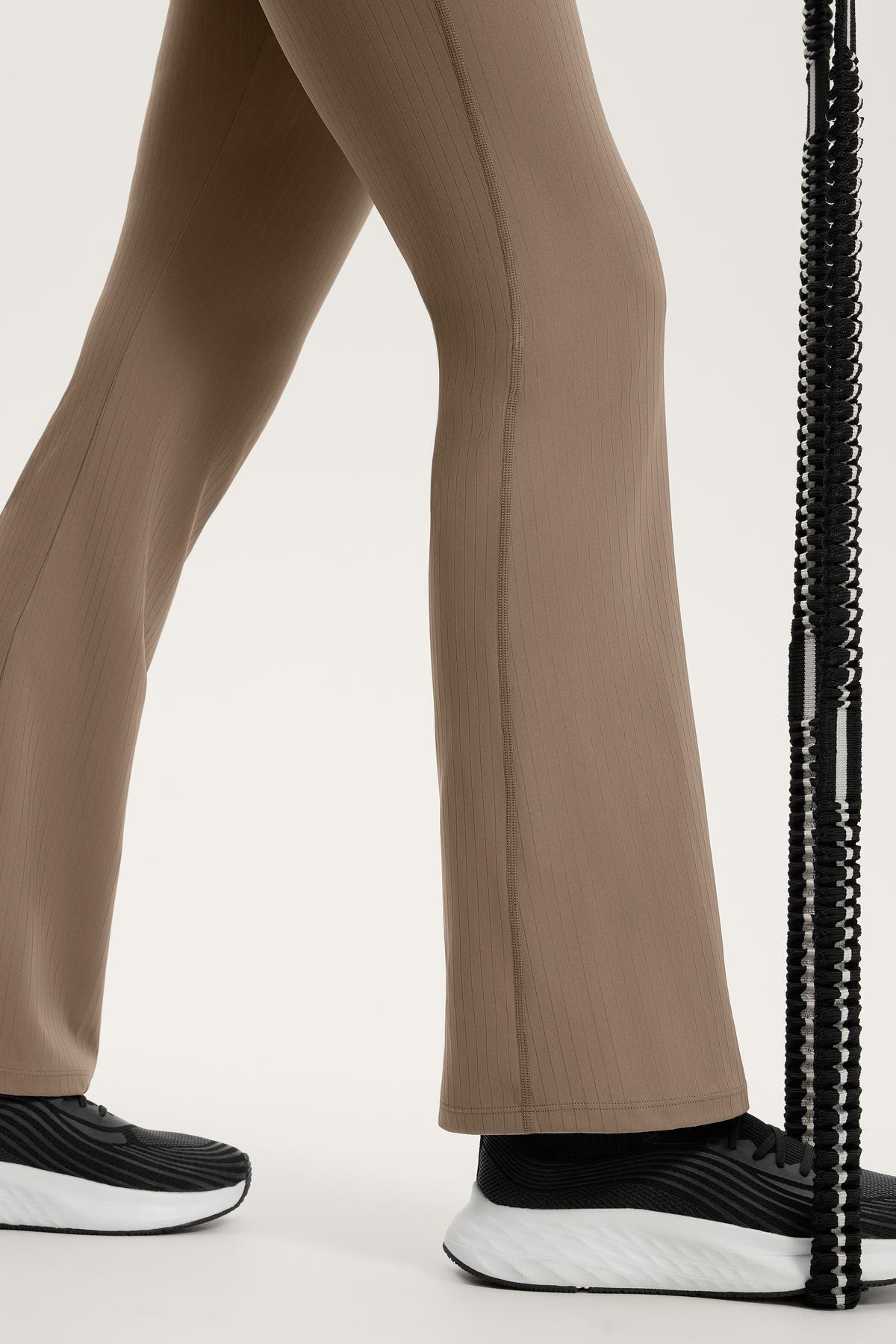 Bilek hizasında uzun ispanyol paça pantolon, daha düz bir görünüm için silikonlu belli.