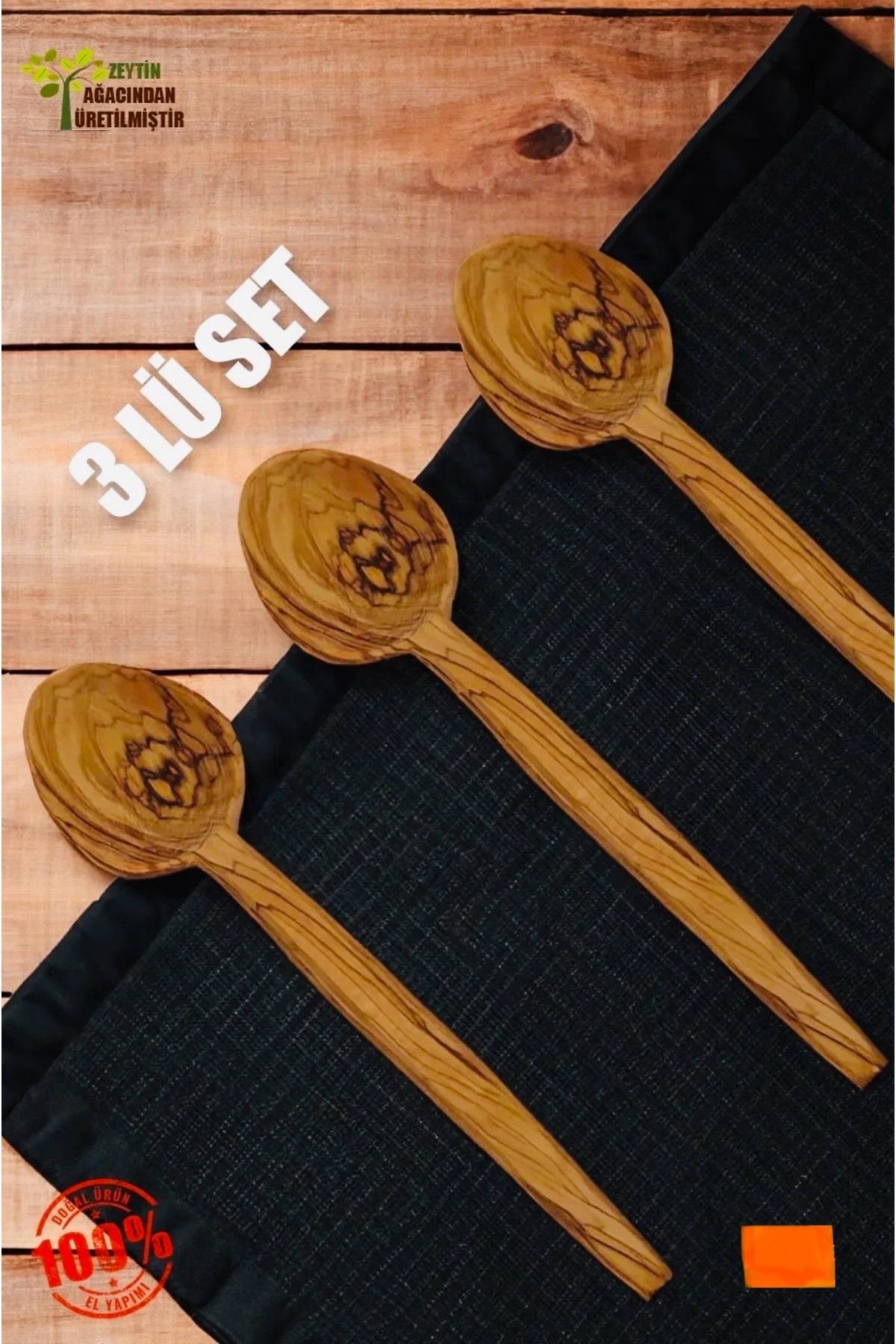 Hakiki el yapımı 23 cm boyutunda 3 adet zeytin kaşıklar