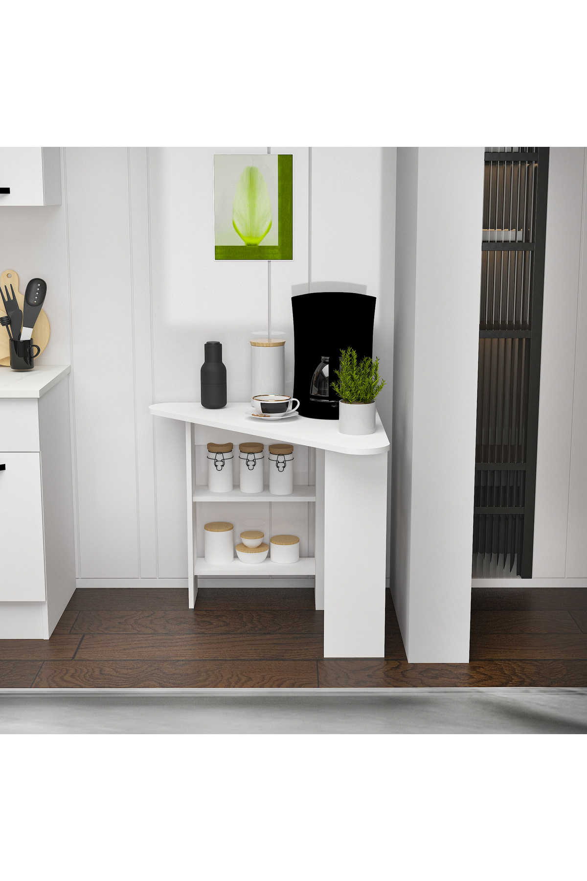 Corner Kahve Köşesi Çok Amaçlı Raflı Mutfak Masası Beyaz