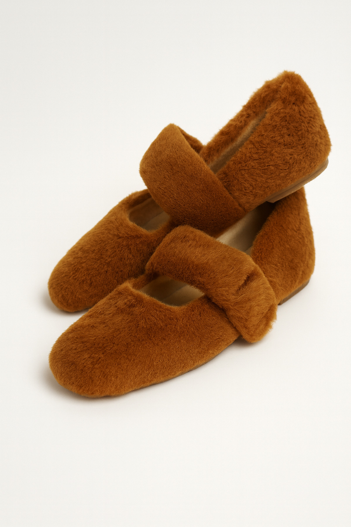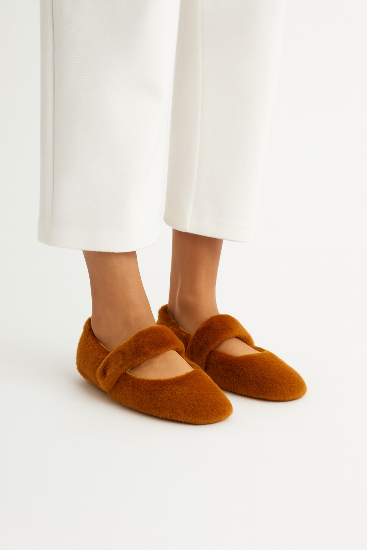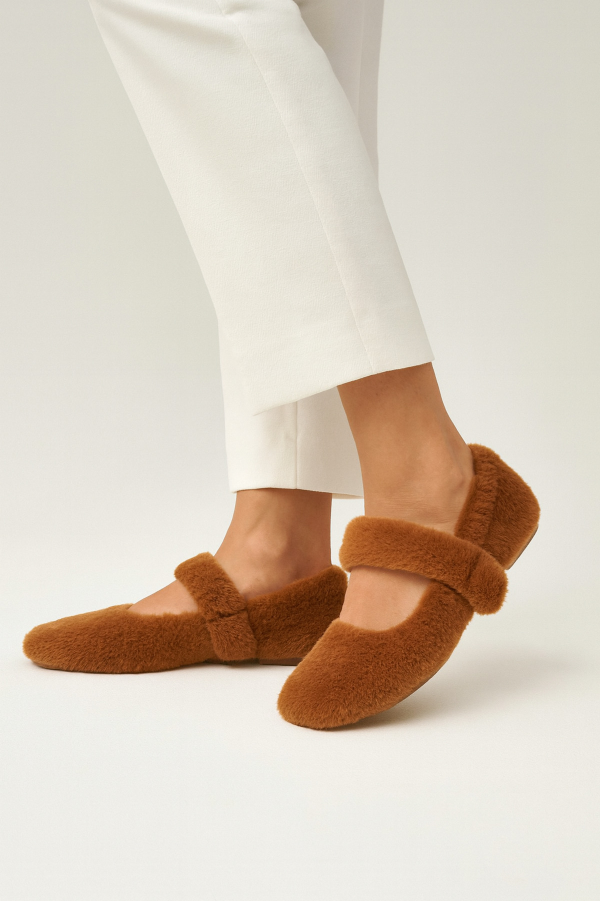 Doğal taba rengin şıklığını tüylü peluş sıcaklığıyla birleştiren Beyond Mary Jane kadın babet, günlük stilin vazgeçilmezi.