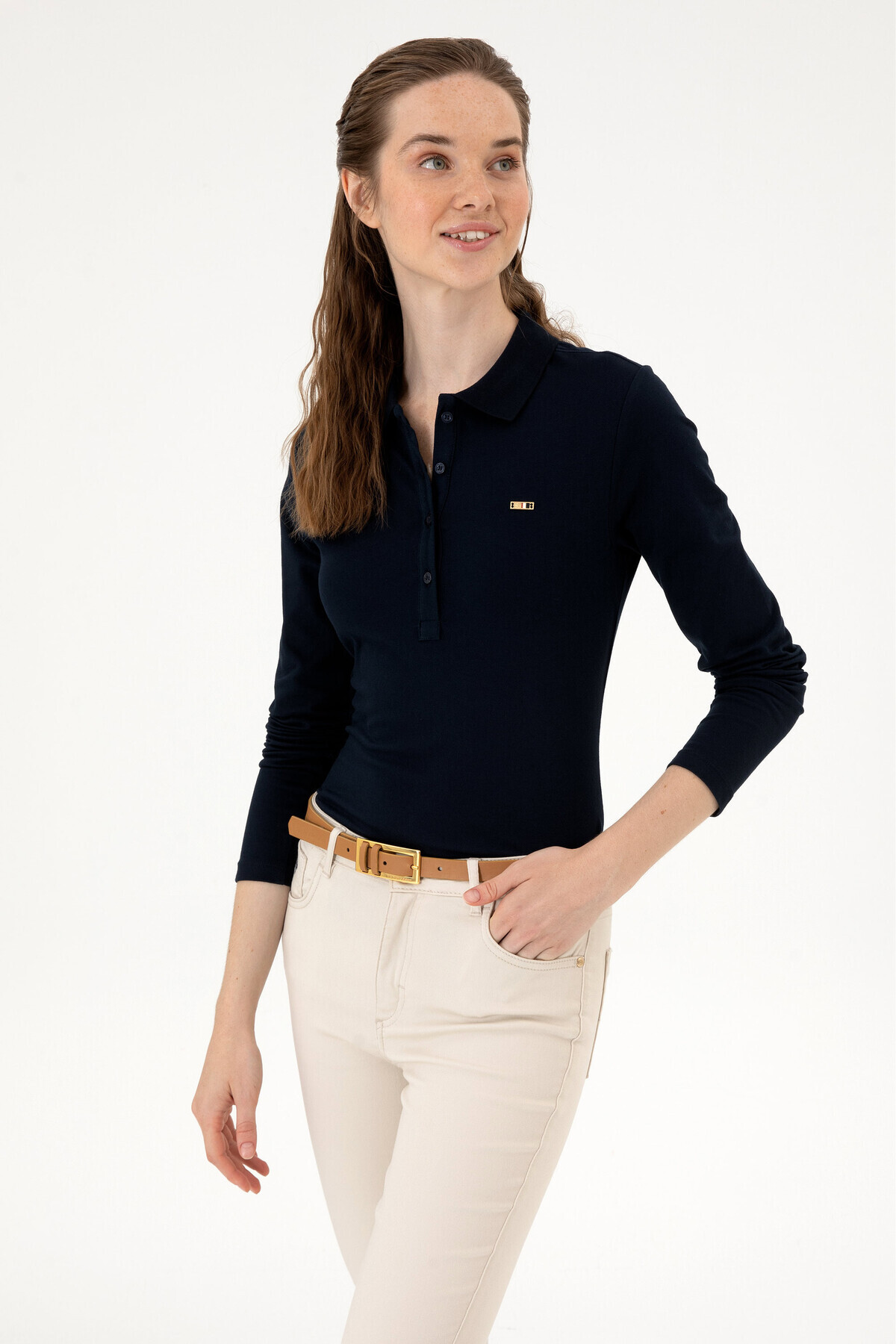 Kadın Siyah Basic Polo Yaka Sweatshırt 50313593-VR046