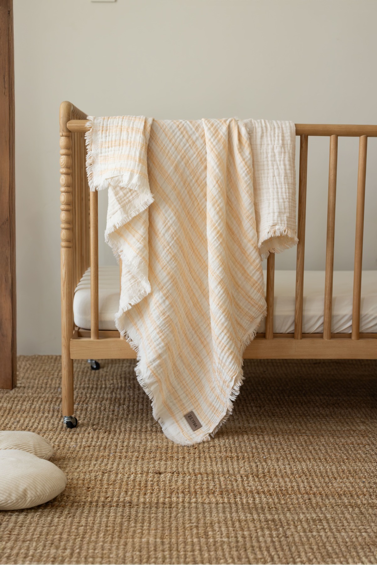 Tüm ürünlerimiz %100 pamuk iplik kullanılarak özel bir teknikle dokunan dört kat müslin kumaştan üretilir.