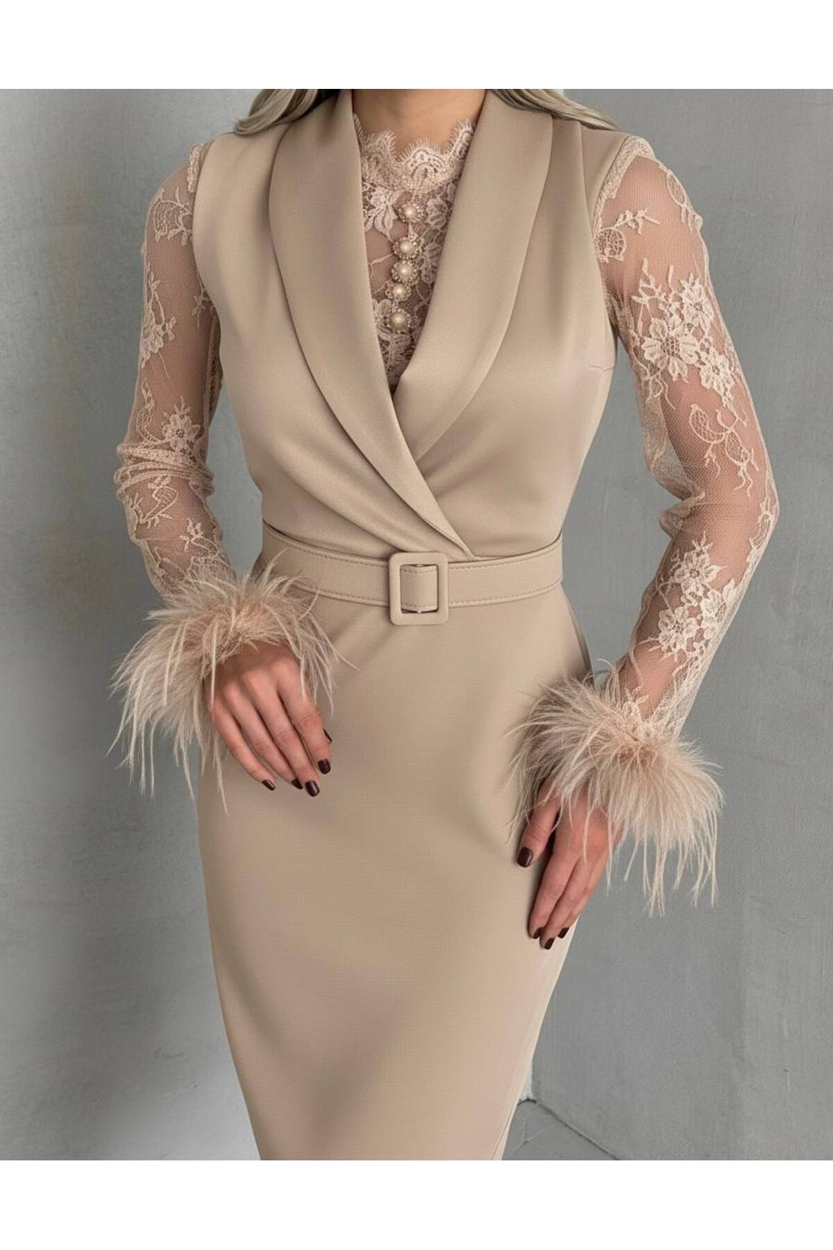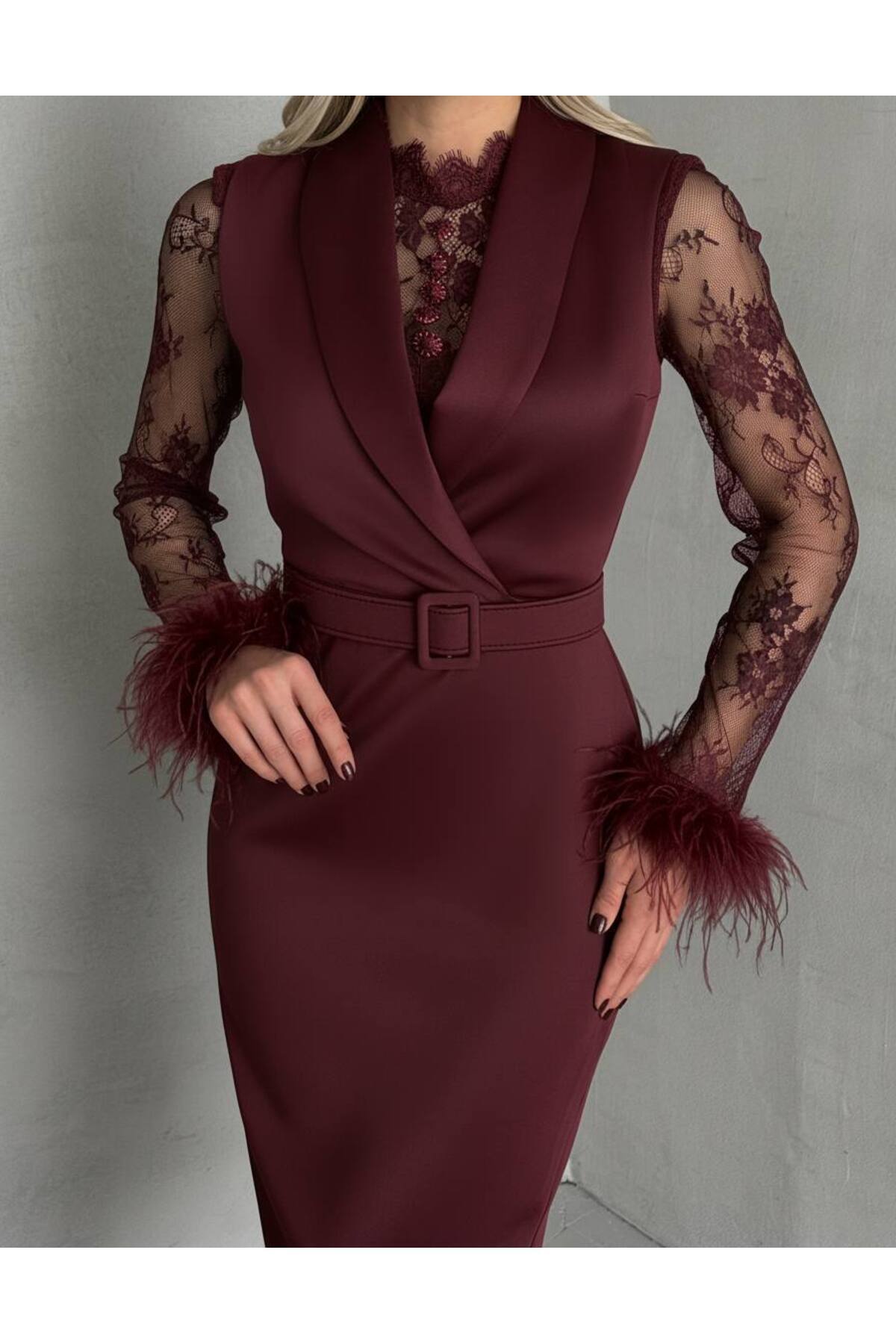 Kadın Kruvaze Yaka Dantel Detaylı Manşeti Otrişli Söz - Nişan - Nikah Elbisesi