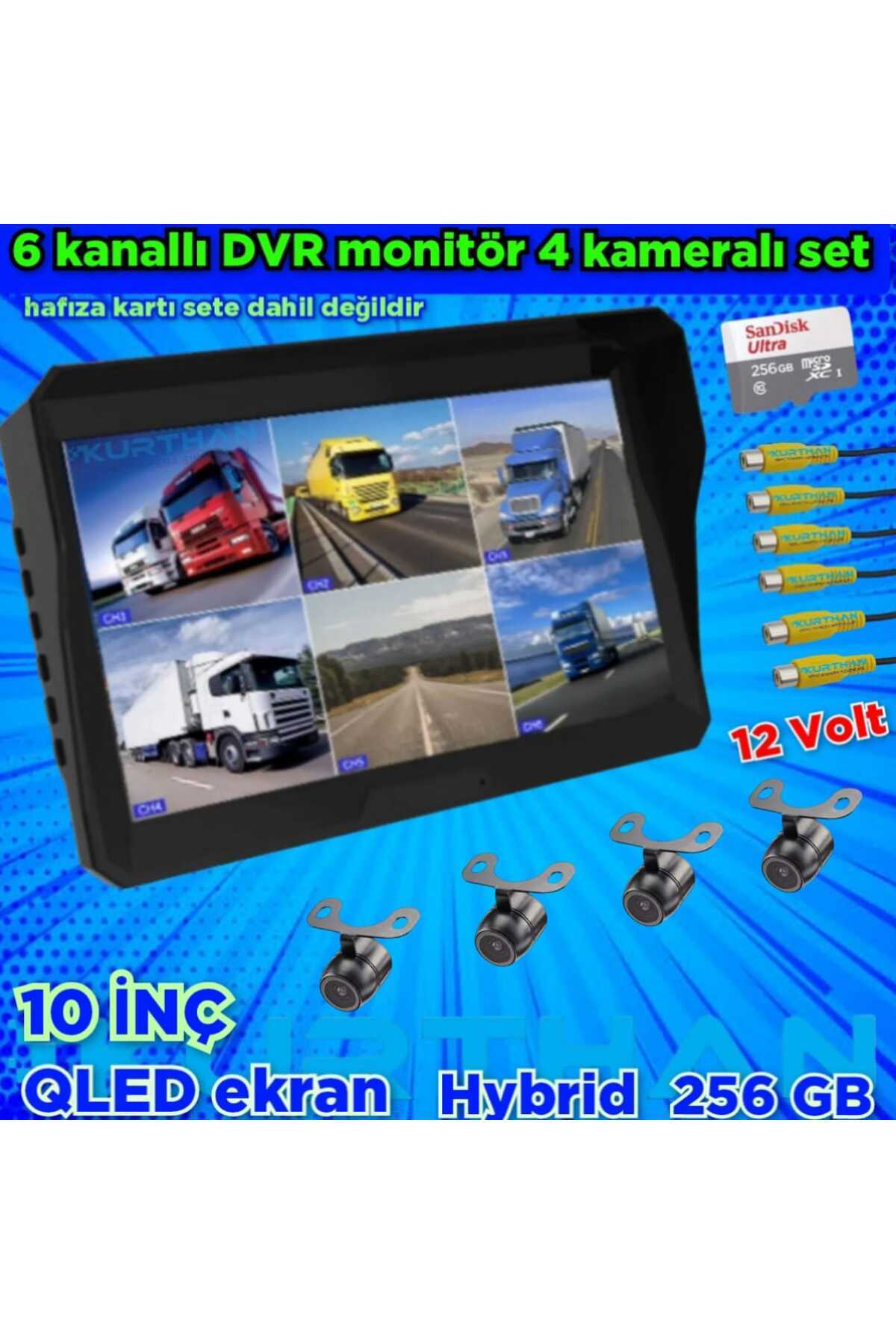 TARIMSAL ARAÇLARA 4 KAMERALI 6 KANALLI DVR MONİTÖR SETİ 12 VOLT 256 GB