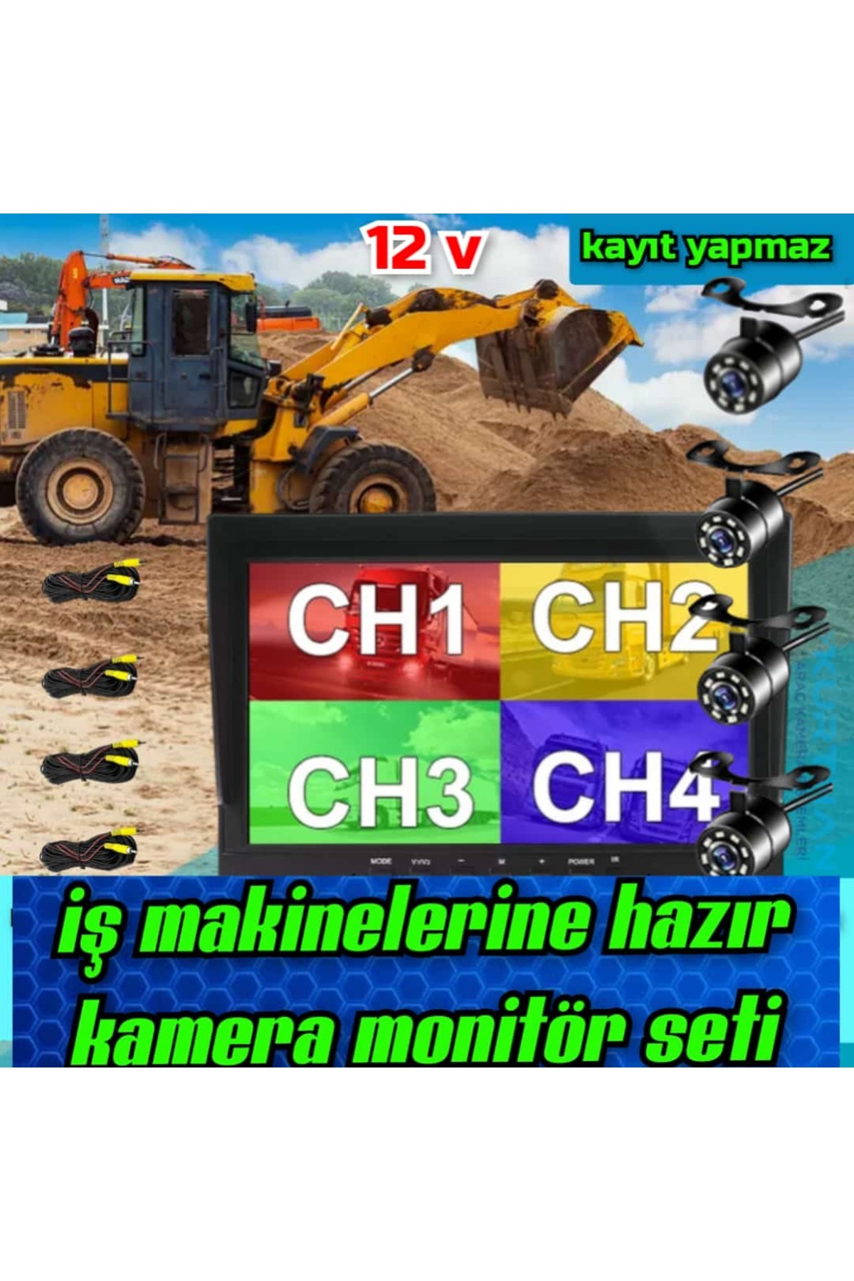 4 ADET BEYAZ LEDLİ KELEBEK KAMERA VE 7 İNÇ EKRAN KAYIT YAPMAZ 12 VOLT