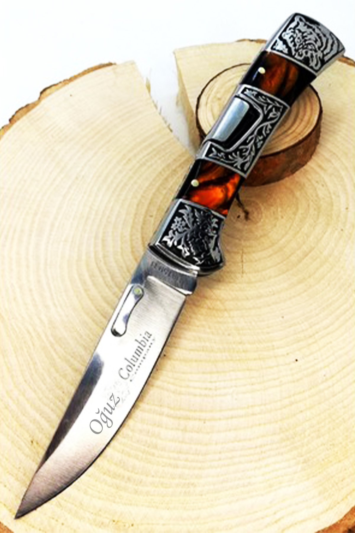 Kişiye özel lüks çakı ve kutusu lazer markalama ile kişiye özel ürün İsim bıçak kısmına yazılmaktadır Çelik Alışımlı Malzeme, özel emniyetli, özel Kutusu ile birlikte gelen bu çakı seti, hem pratik kullanım hem de estetik görünüm açısından idealdir.