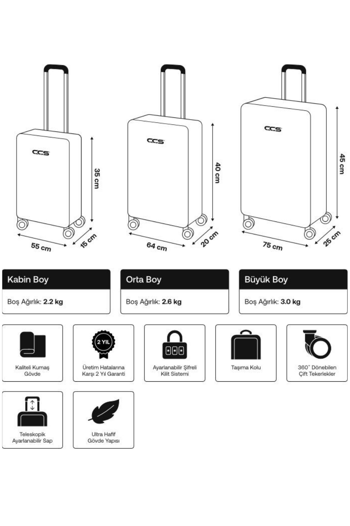 Unisex Ultra Hafif Ve Lüks İthal Kumaş Kapağı Körüklü Valiz 25W640