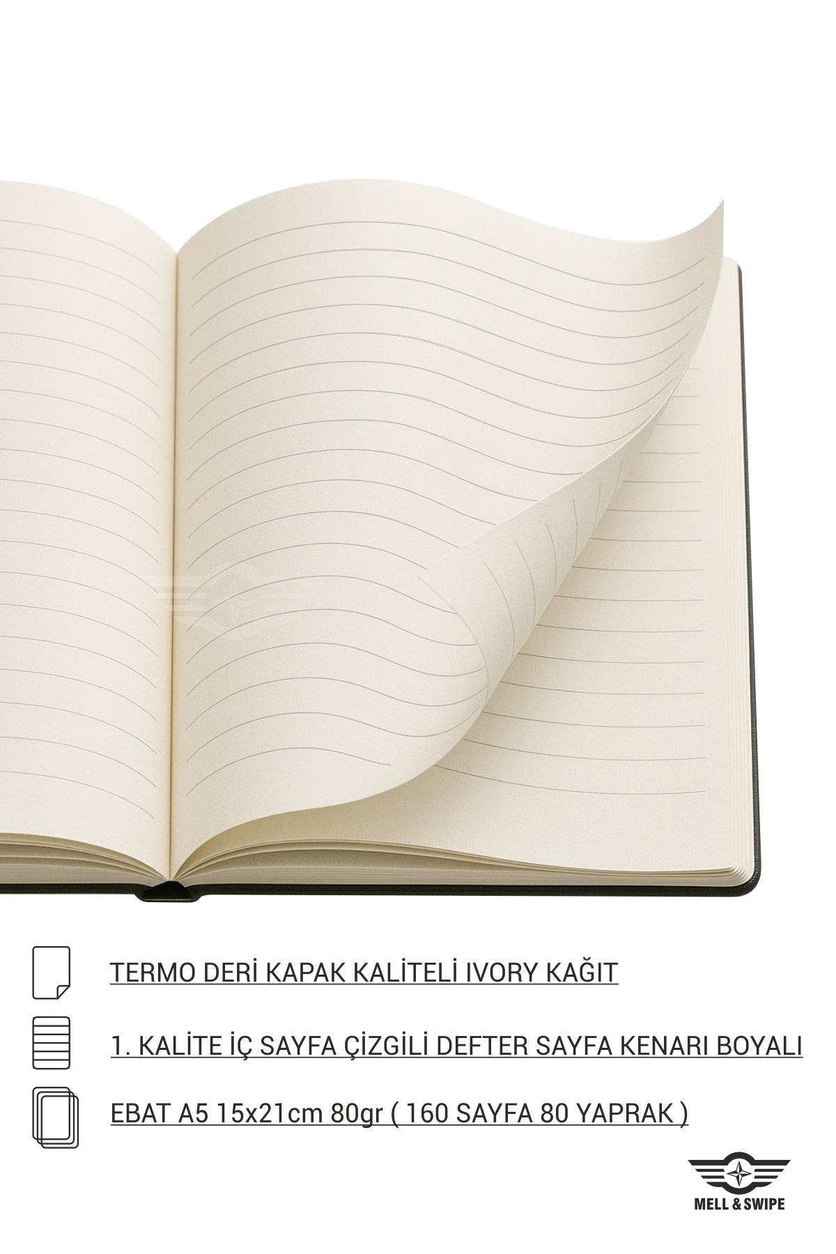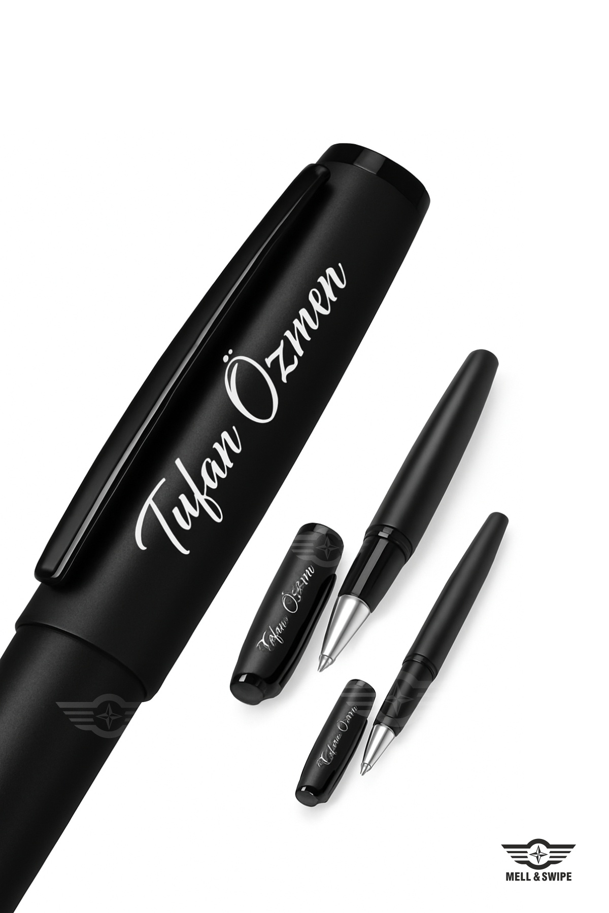 Kişiye İsme Özel Roller Kalem Not Defteri Siyah Termo Deri Isim Baskılı Set 160 Yaprak Ivory Kağıt