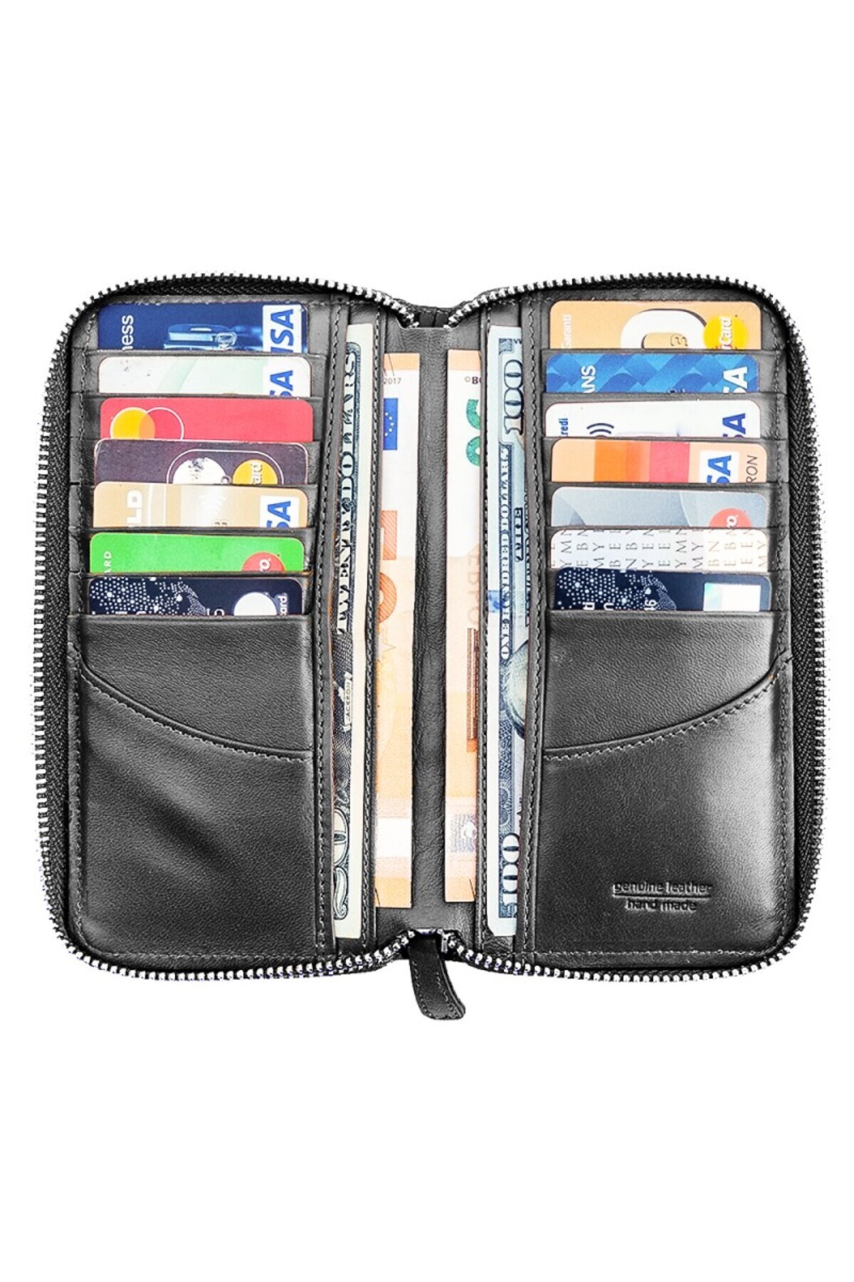 Gerçek Deri Cep Telefon Portföy Cüzdan / 2630 Siyah (Hasır P.)