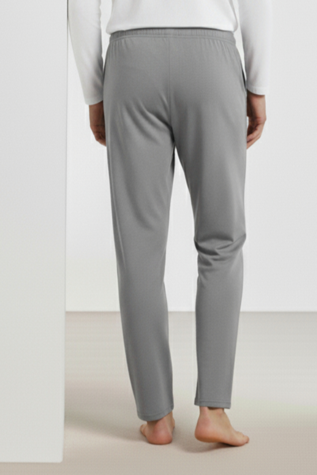 Beyaz Uzun Kollu T-Shirt + Gri Pijama Altı, Kalıp: Relax Fit / Normal Kesim