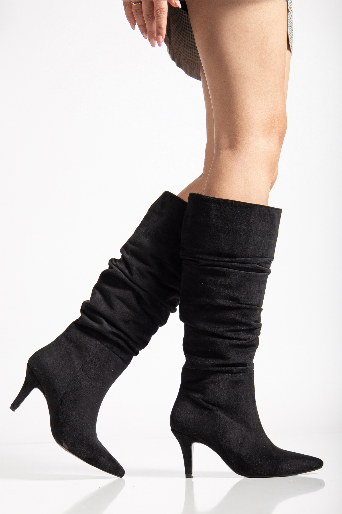 - Zarif tasarımıyla dikkat çeken bu kadın çizme, sivri burunlu ve ince topuklu yapısıyla şıklığınızı tamamlar.