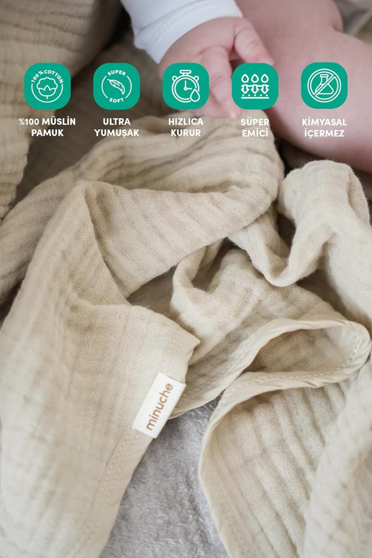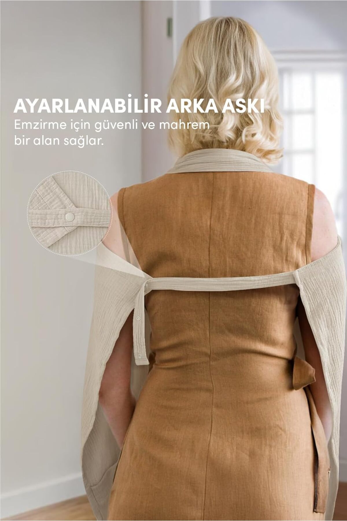Minuche100 Pamuk 4 Katlı Müslin Emzirme Örtüsü - Opak Bebek Emzirme Önlüğü - Nefes Alınabilir Yaka (Krem)