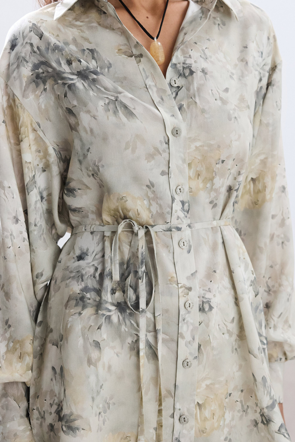 SOFT HAKİ FLORAL DESENLİ VINTAGE GÖMLEK