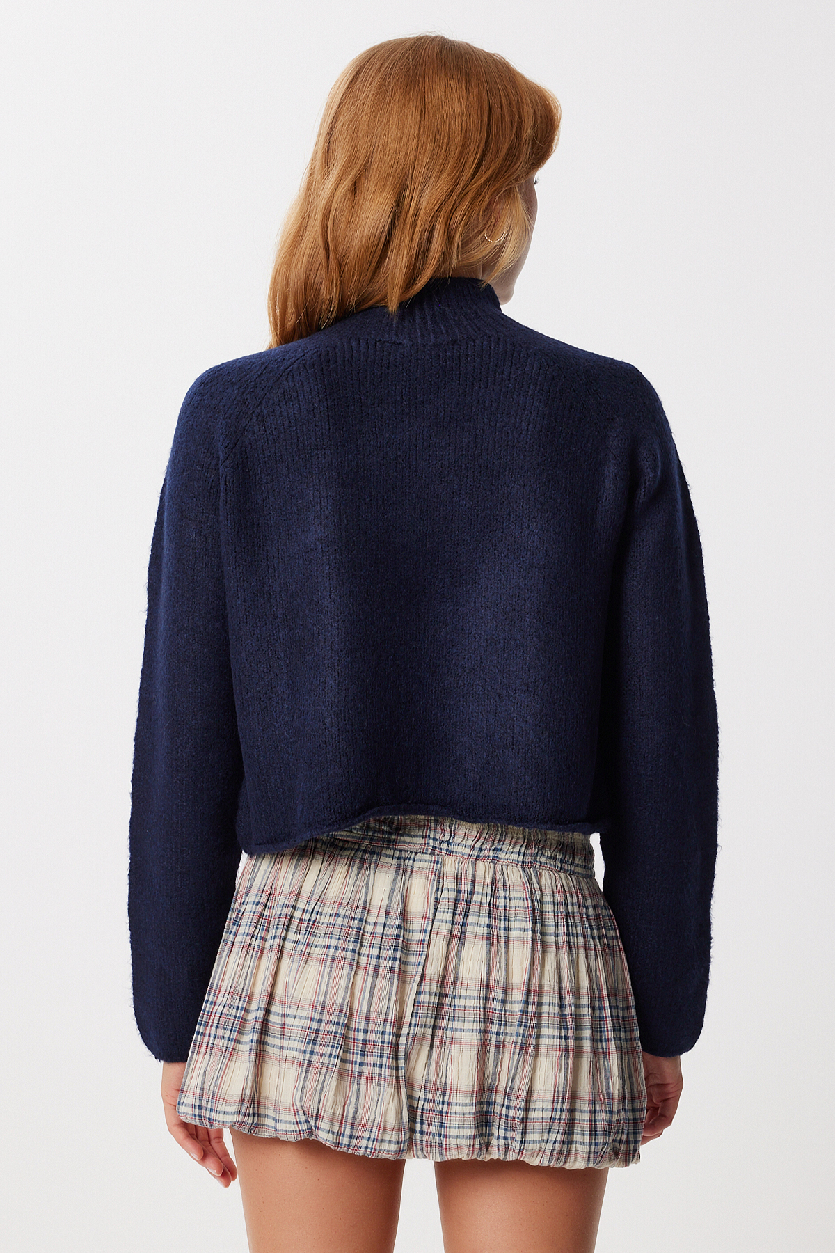 • Dik yaka, esnek yapılı, basic, crop triko kazak