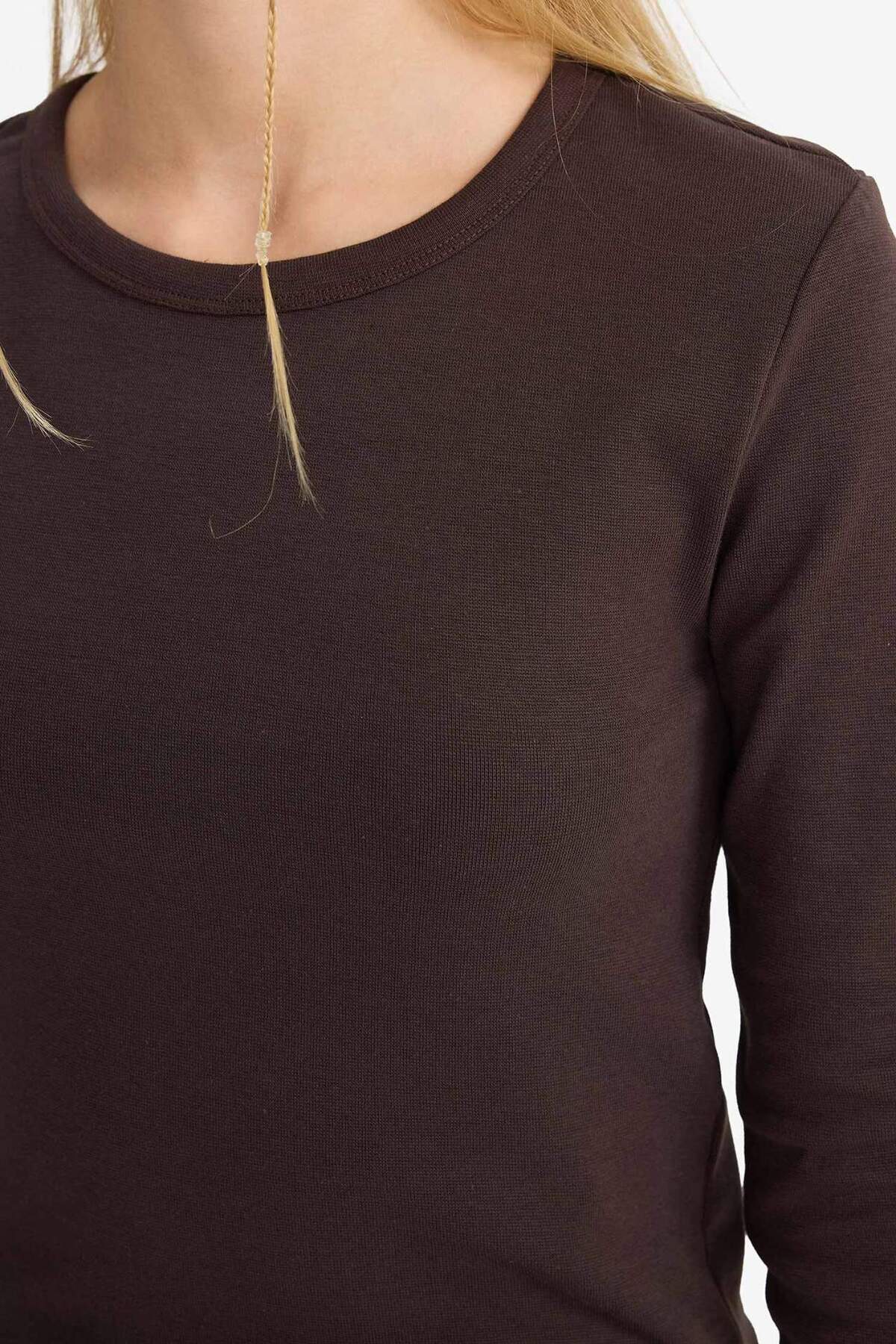 Coool Fitted Bisiklet Yaka Ribana Uzun Kollu Tişört, ribana dokusu ve vücuda oturan kesimiyle modern bir görünüm sunar.