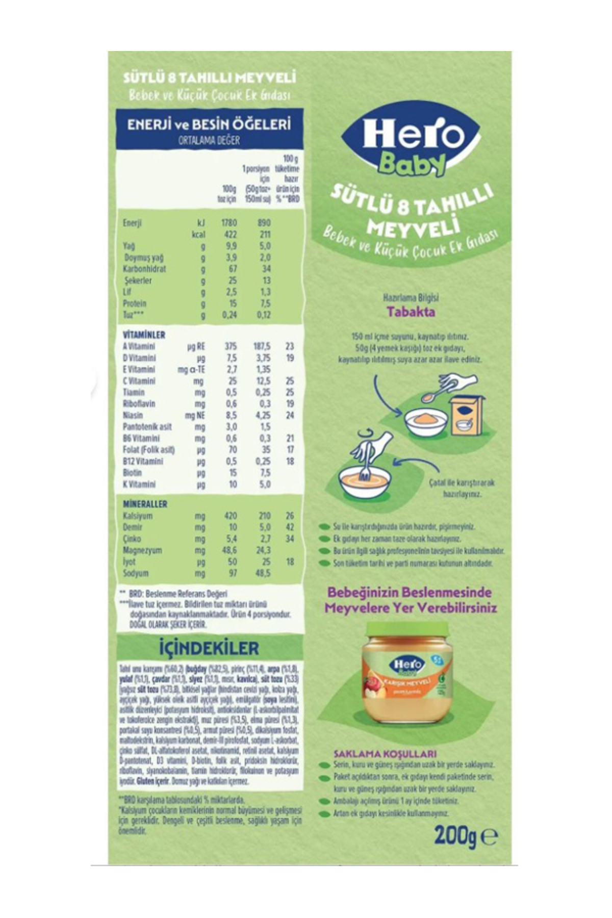 Sütlü 8 Tahıllı Meyveli Kaşık Mama 200g x 5 Adet