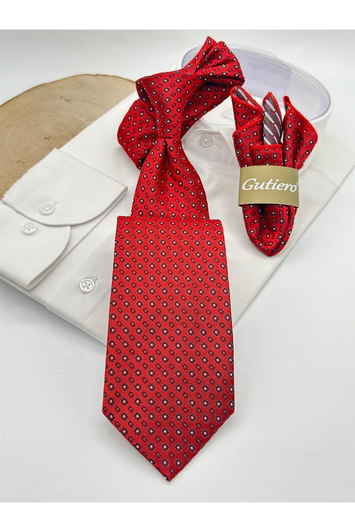 - Zarif kırmızı desenleriyle dikkat çeken bu kravat, şıklığınızı tamamlar.