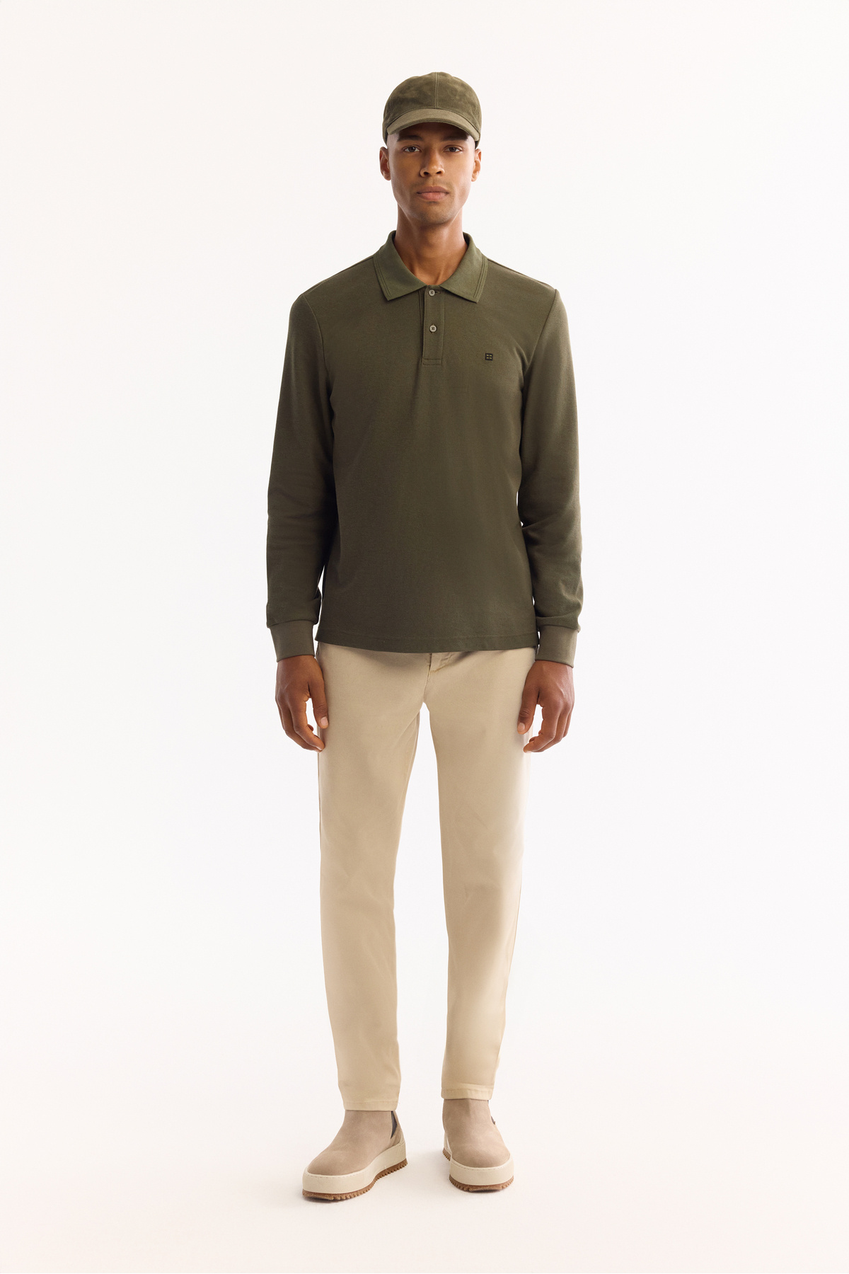 Uzun kollu, 2 Düğmeli polo yaka, Heavy pike, Dokulu yaka, Göğüste kontrast nakış branding detaylı, Yırtmaçlı, Slim fit Dar kesim basic Sweatshirt