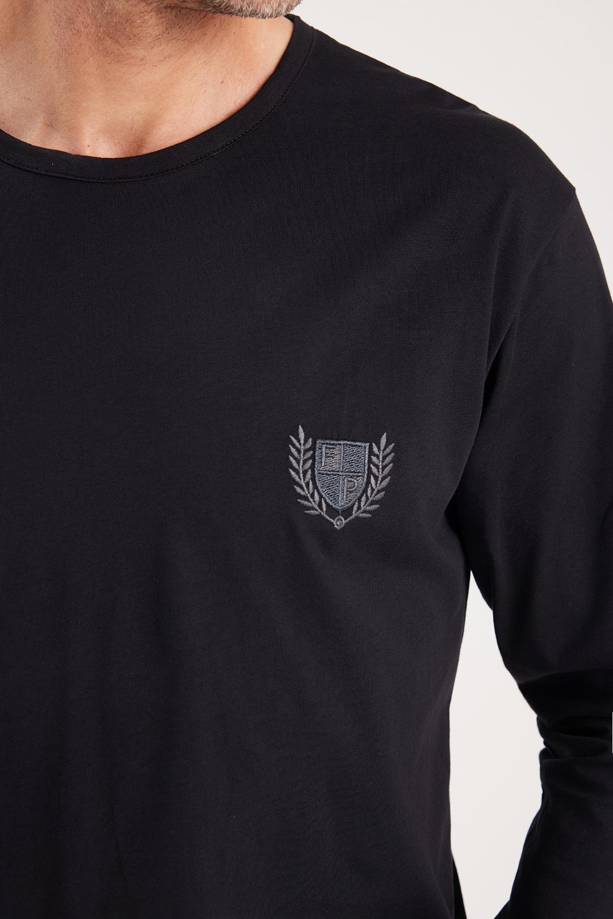 Erkek Standart Fit %100 Pamuk Bisiklet Yaka Beli Lastikli Siyah Pijama Takımı