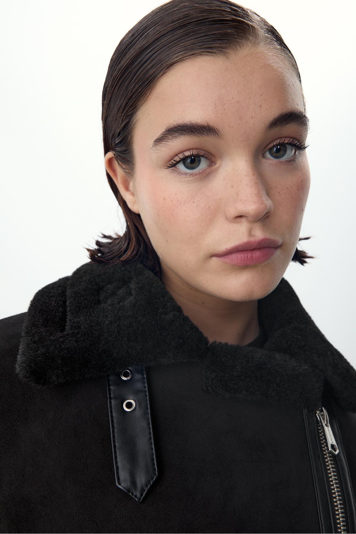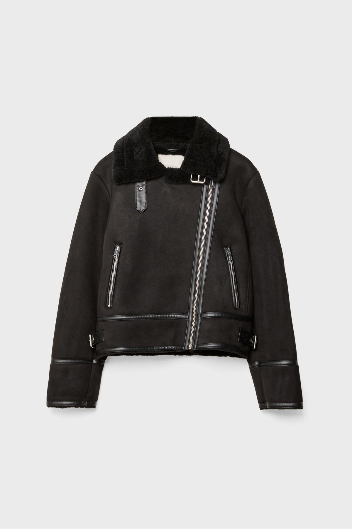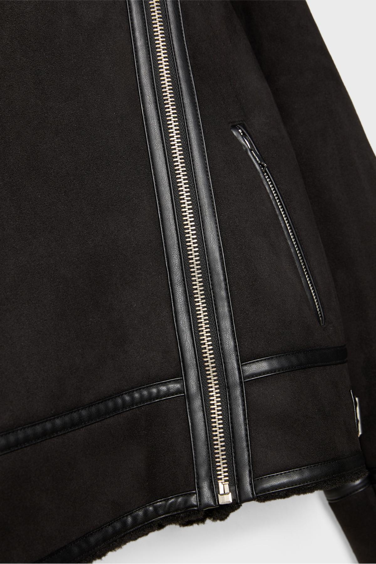 • İçi kürklü ceket, suni süet kumaştan üretilmiştir.