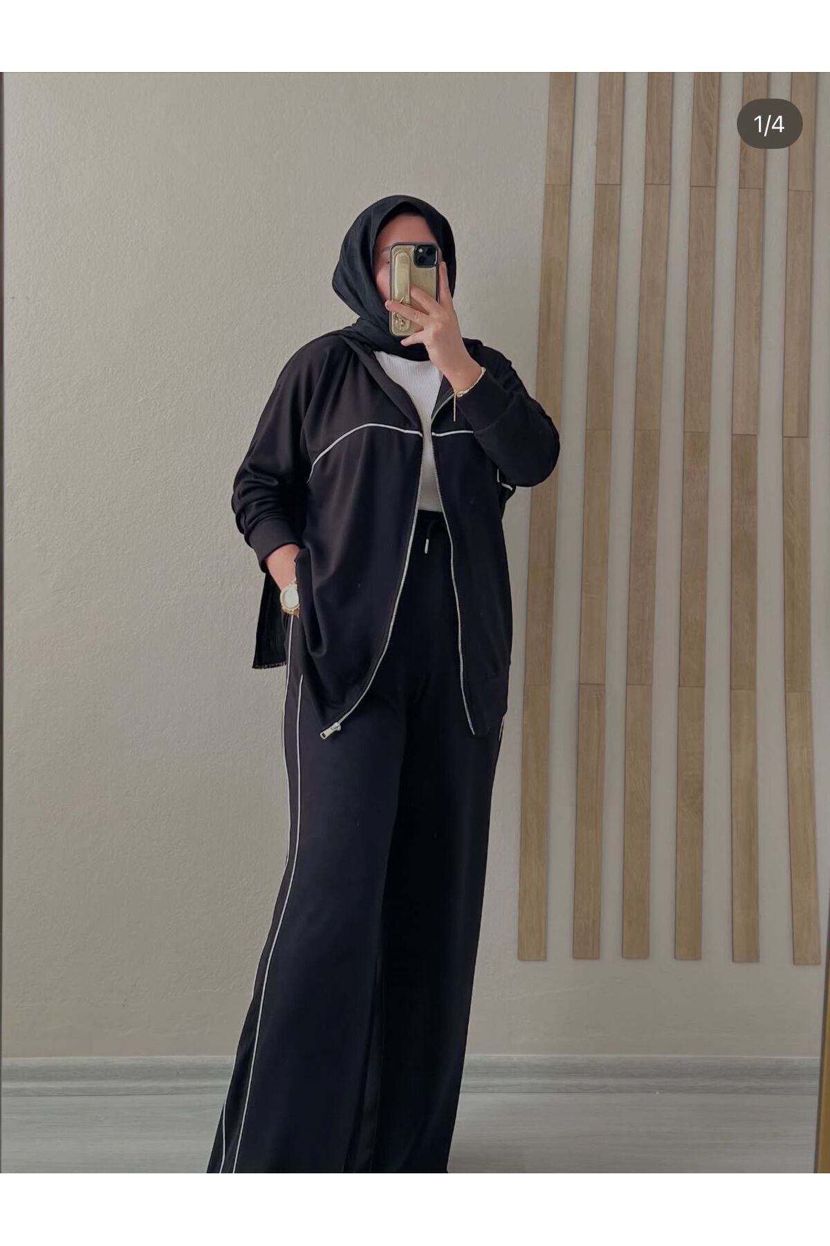 Kadın Siyah %100 Pamuk Alt Üst Takım | Likralı Rahat Kalıp | 4 Mevsim Kullanım | Şık ve Konforlu