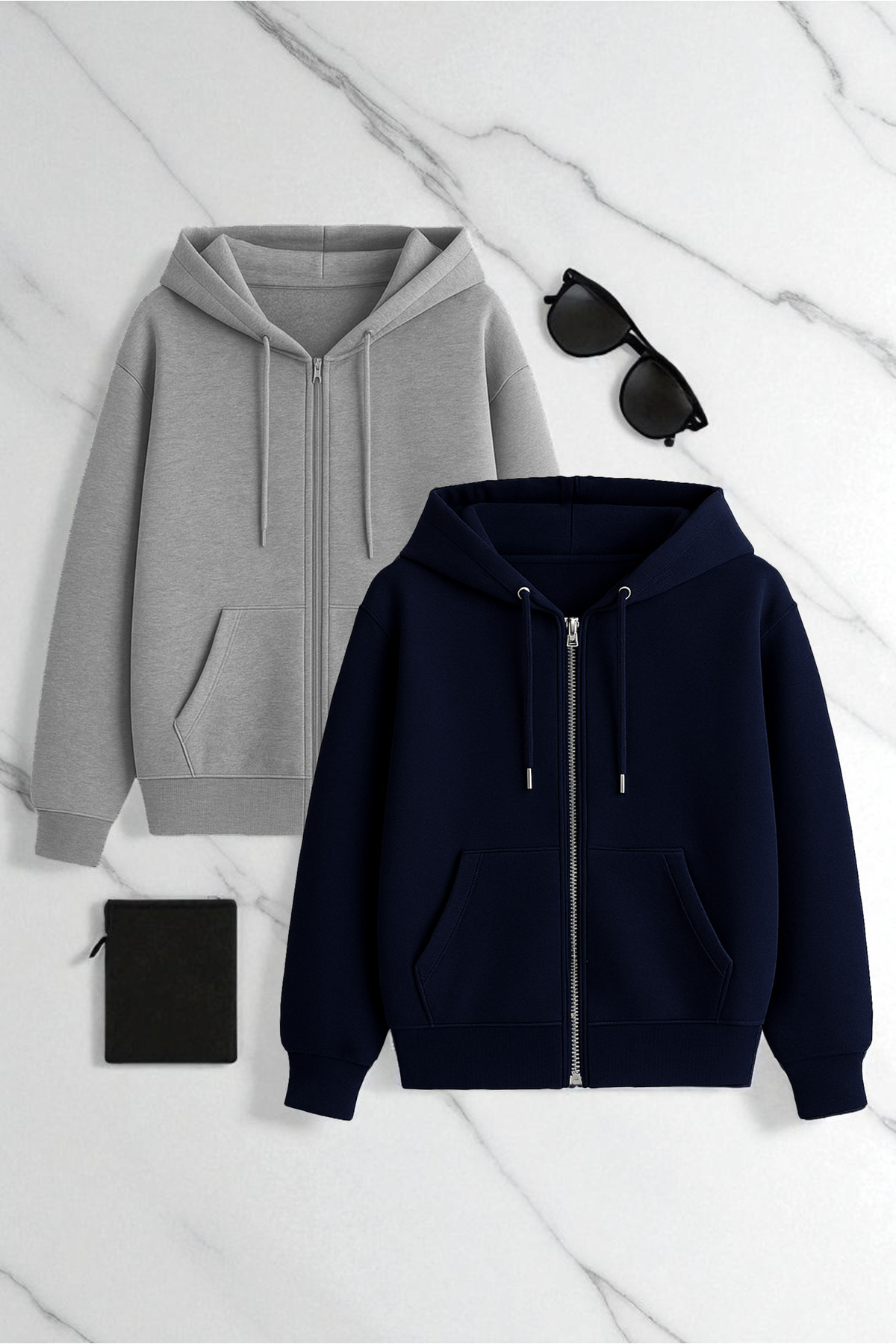 Unisex Siyah Fermuarlı Kapüşonlu Sweatshirt