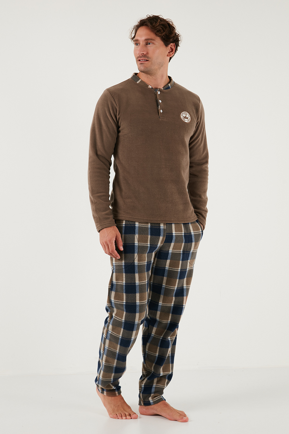 Ekoseli Regular Fit Düğmeli Bisiklet Yaka Kışlık Polar Pijama Takımı Erkek PİJAMA TAKIMI 609
