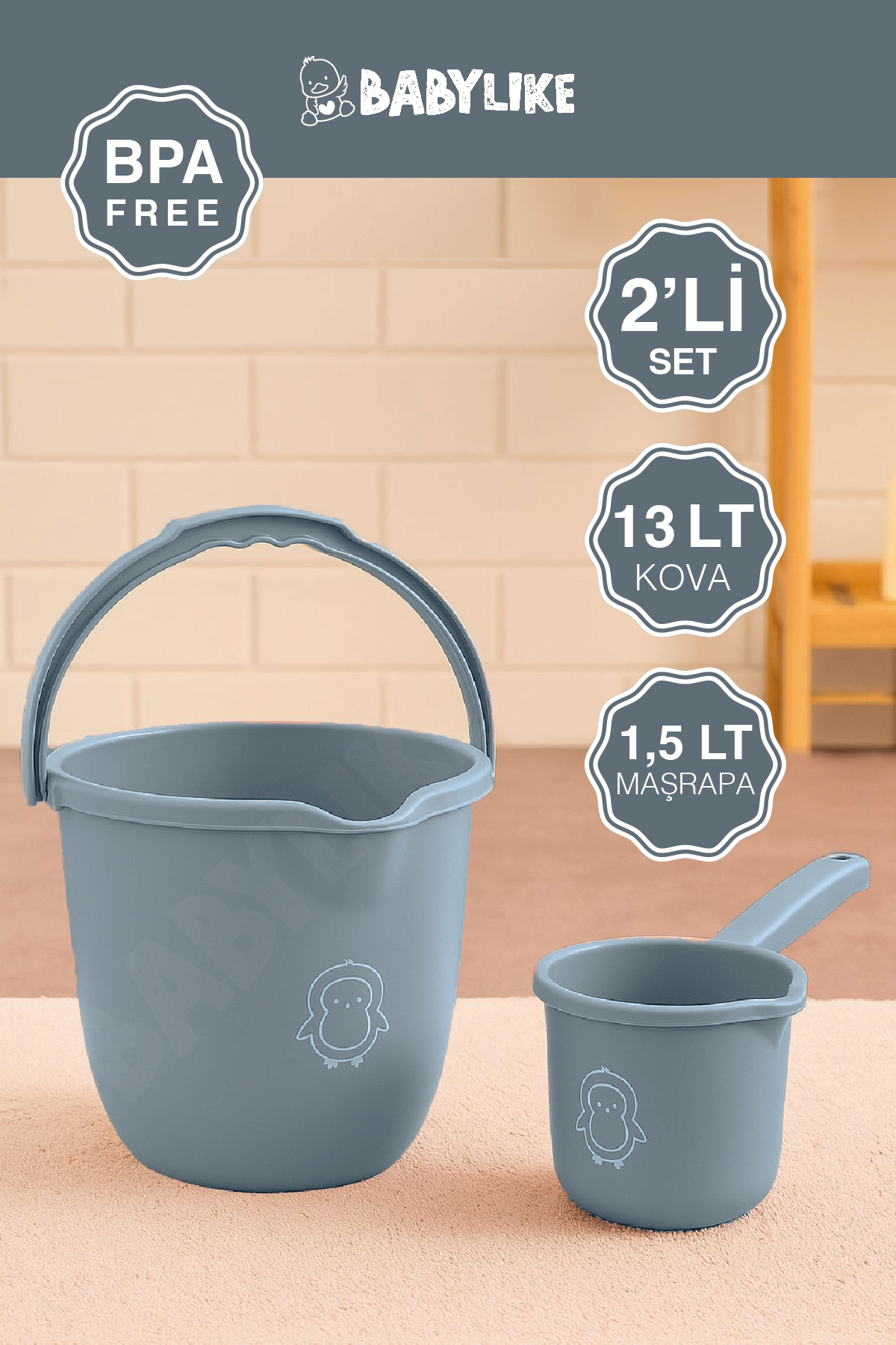 • - İki parçadan oluşan 13 Litre Kova ve 1,5 Litre Uzun Saplı Maşrapa Banyo seti, çocukların banyo zamanlarını daha eğlenceli hale getiriyor.