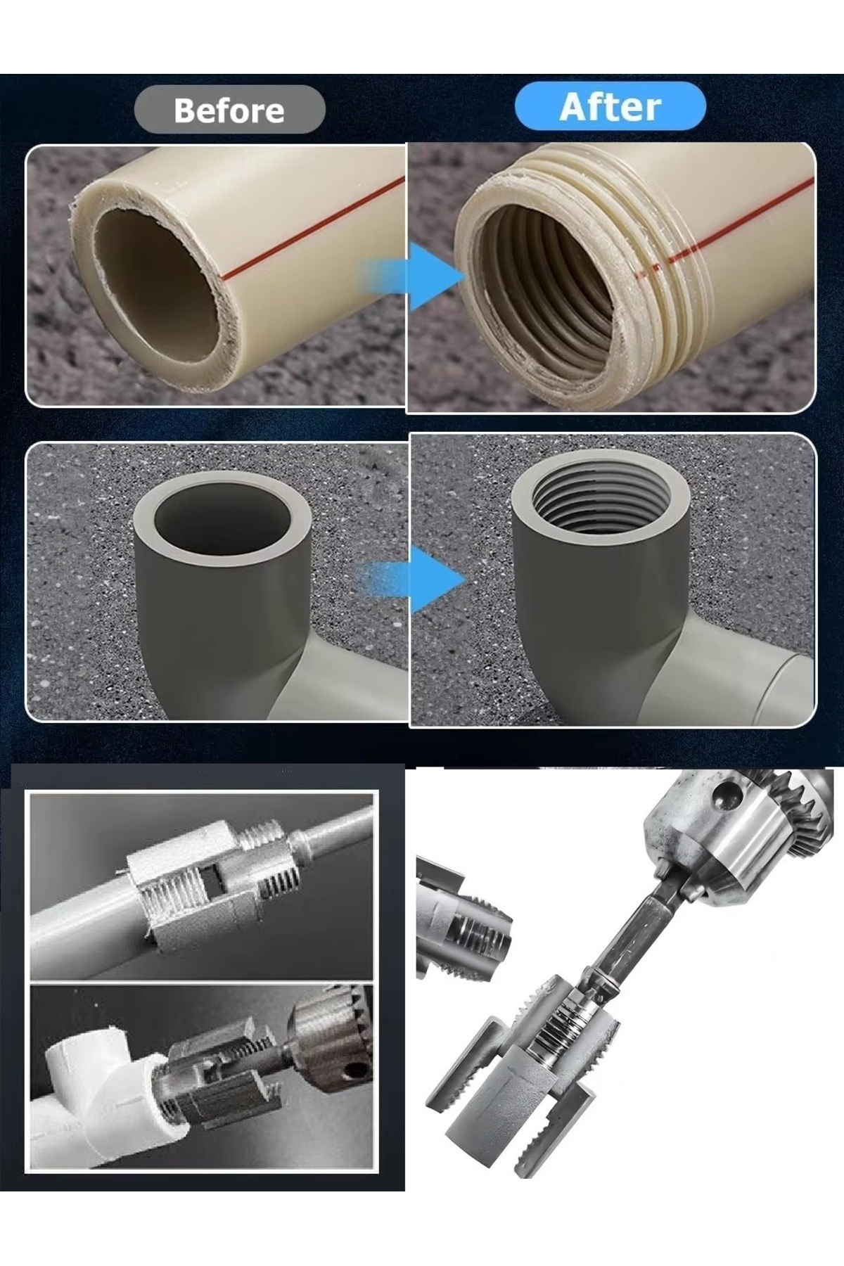 PPRC Pvc Boru Diş açma Aparatı Tamir Onarım Montaj için 1/2" Matkap Adaptörlü Tesisatcı Rayba Klavuz