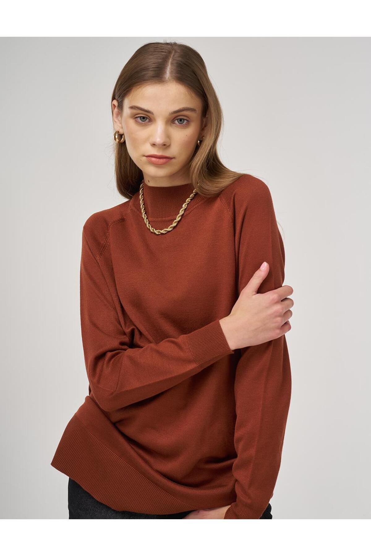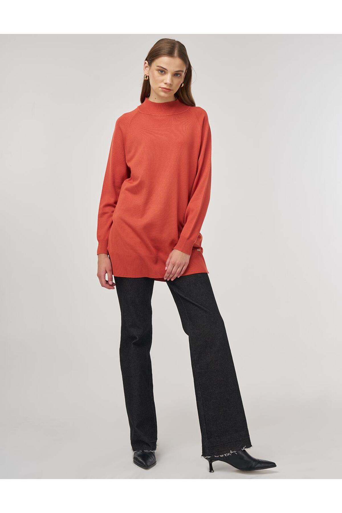 Yarım Balıkçı Yaka Viskon Triko Tunik Kiremit