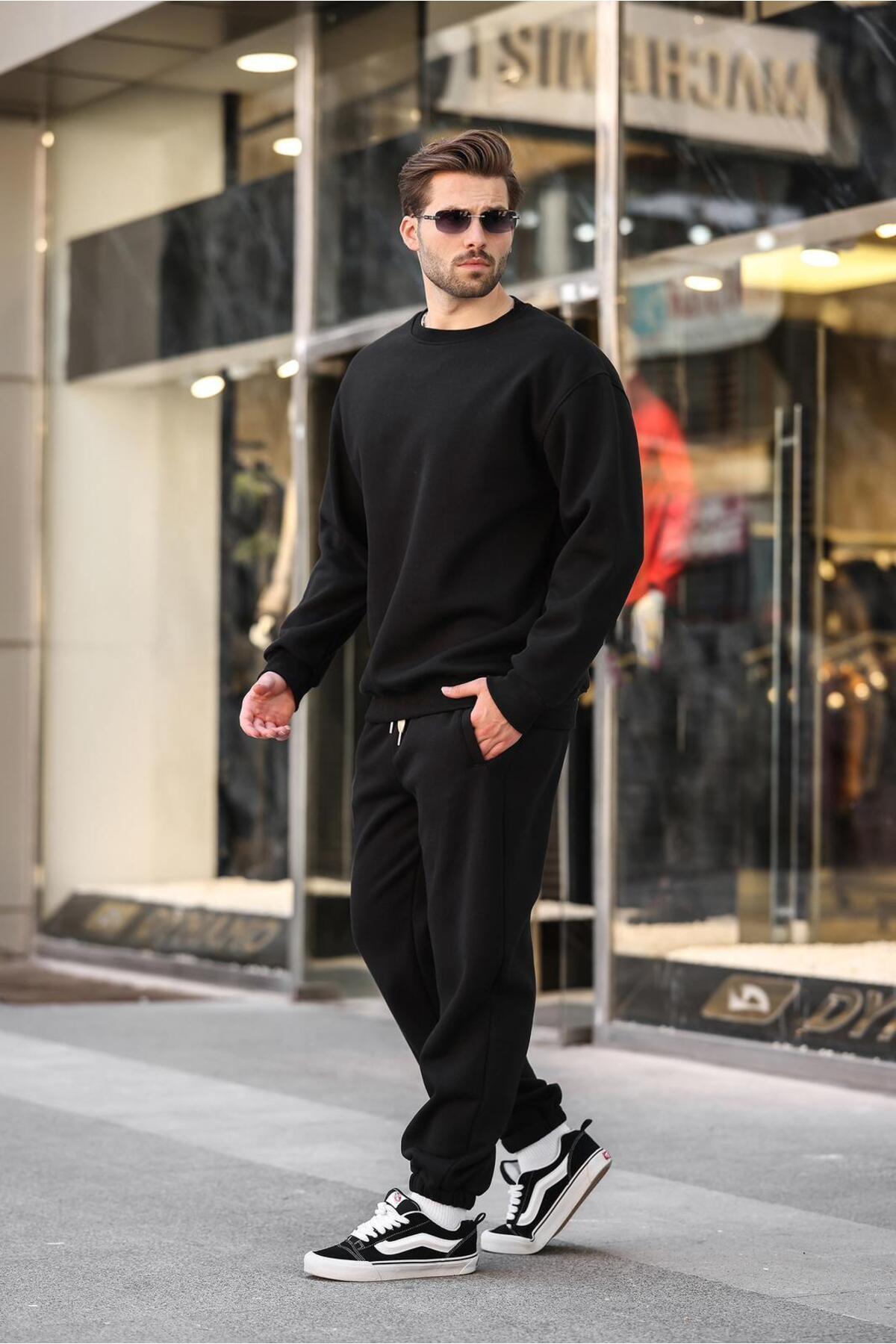 - Rahat ve şık bir görünüm için siyah bisiklet yaka basic eşofman takımı, günlük kullanımınıza uyum sağlar.