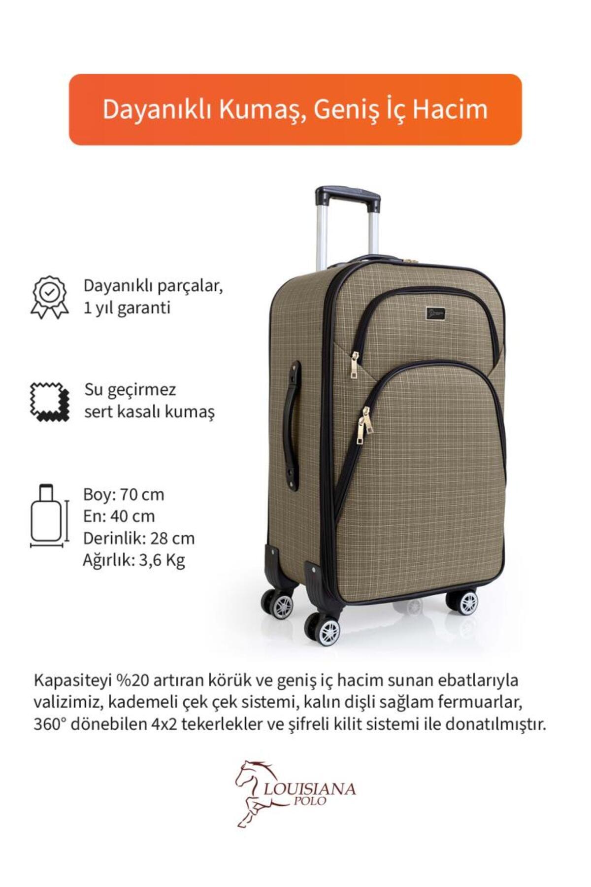 EBATLAR: Büyük Boy Valiz Ölçüleri: Boy: 80 cm, En: 47 cm, Derinlik: 30 cm +Körük Ağırlık: 3,8 kg Hacim:100 lt Kapasite: 25 kg Ürün Özellikleri Kolay silinebilir, su geçirmez sert kasalı kumaş kumaş.