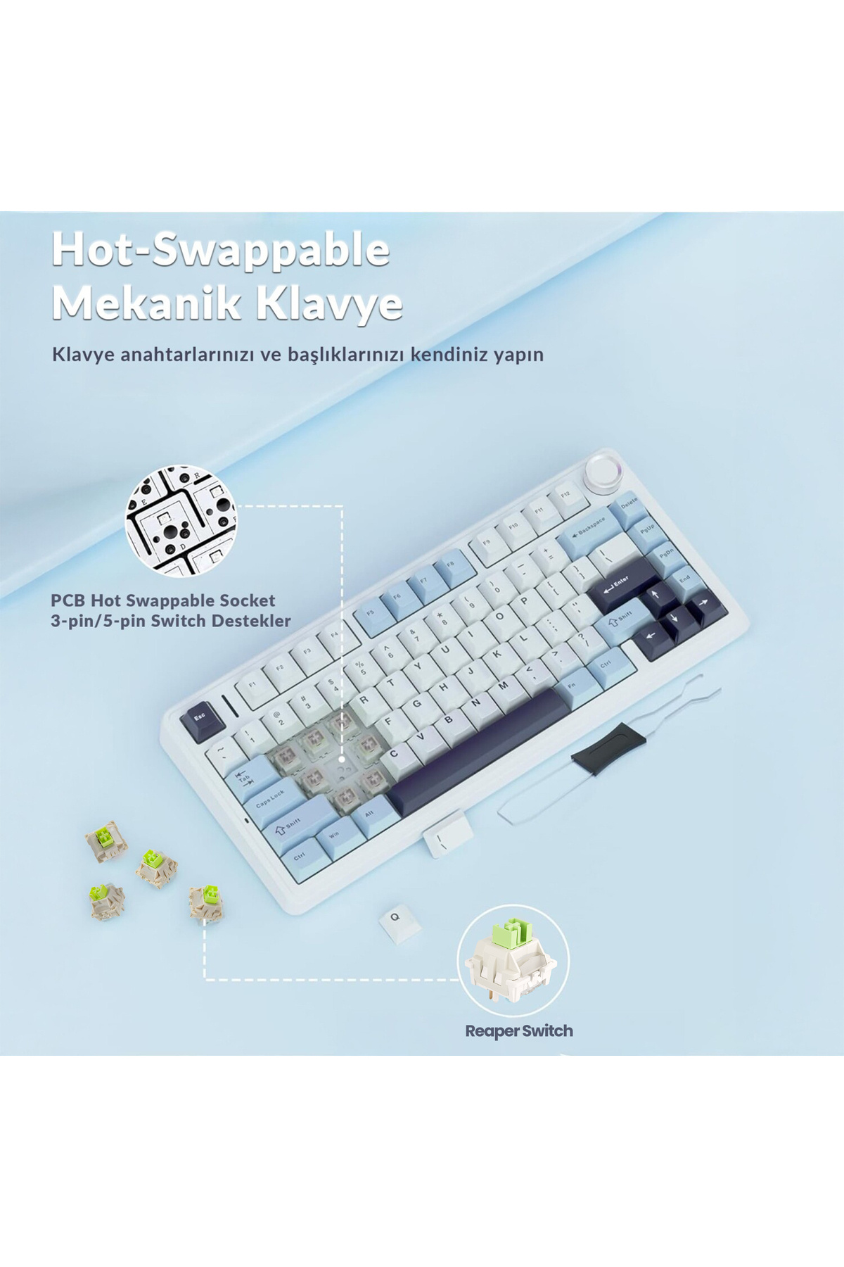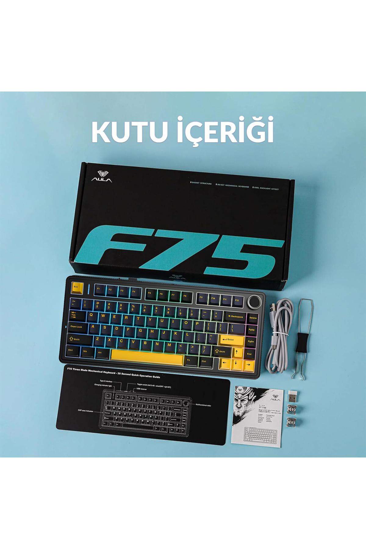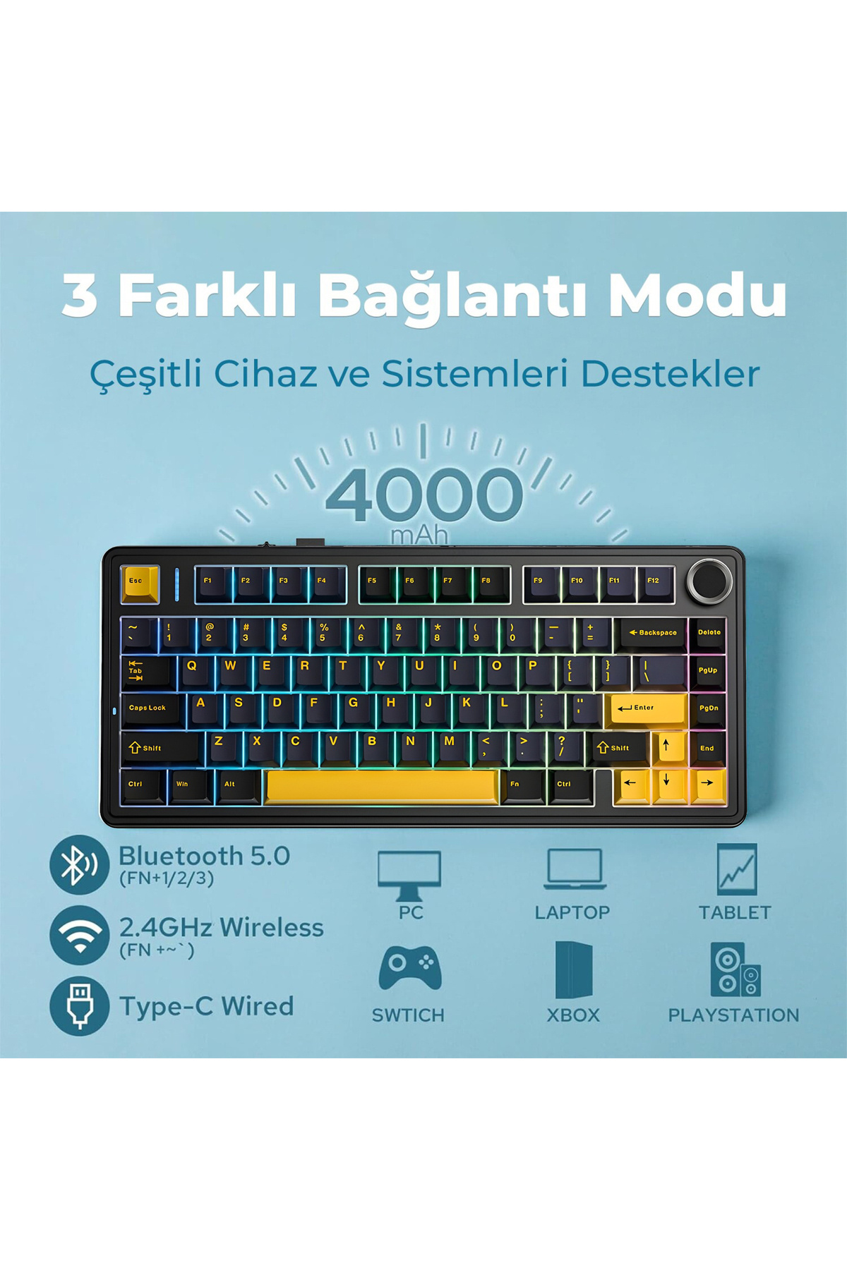 F75 Mekanik Rgb Tkl Hot Swap Graywood V4 Switch Kablosuz Makrolu Türkçe Q Klavye Siyah