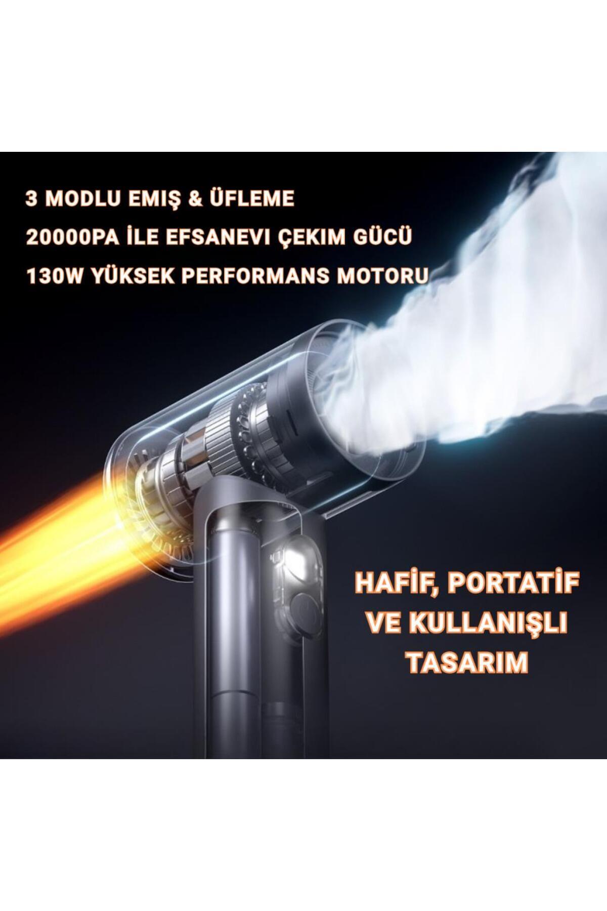 🔄 3 Modlu Kullanım: Hem emiş hem de üfleme gücü sayesinde araç içi temizlikte çok yönlü kullanım sunar.