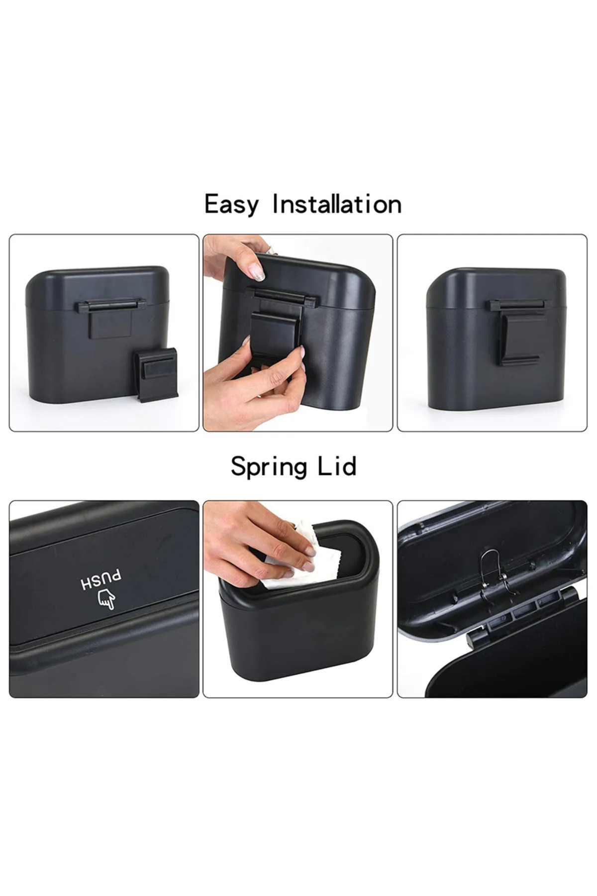 2 Adet Araba Çöp Kutusu Araç Içi Taşınabilir Kapaklı Organizer Çöp Kovası Itme Kapaklı Kova