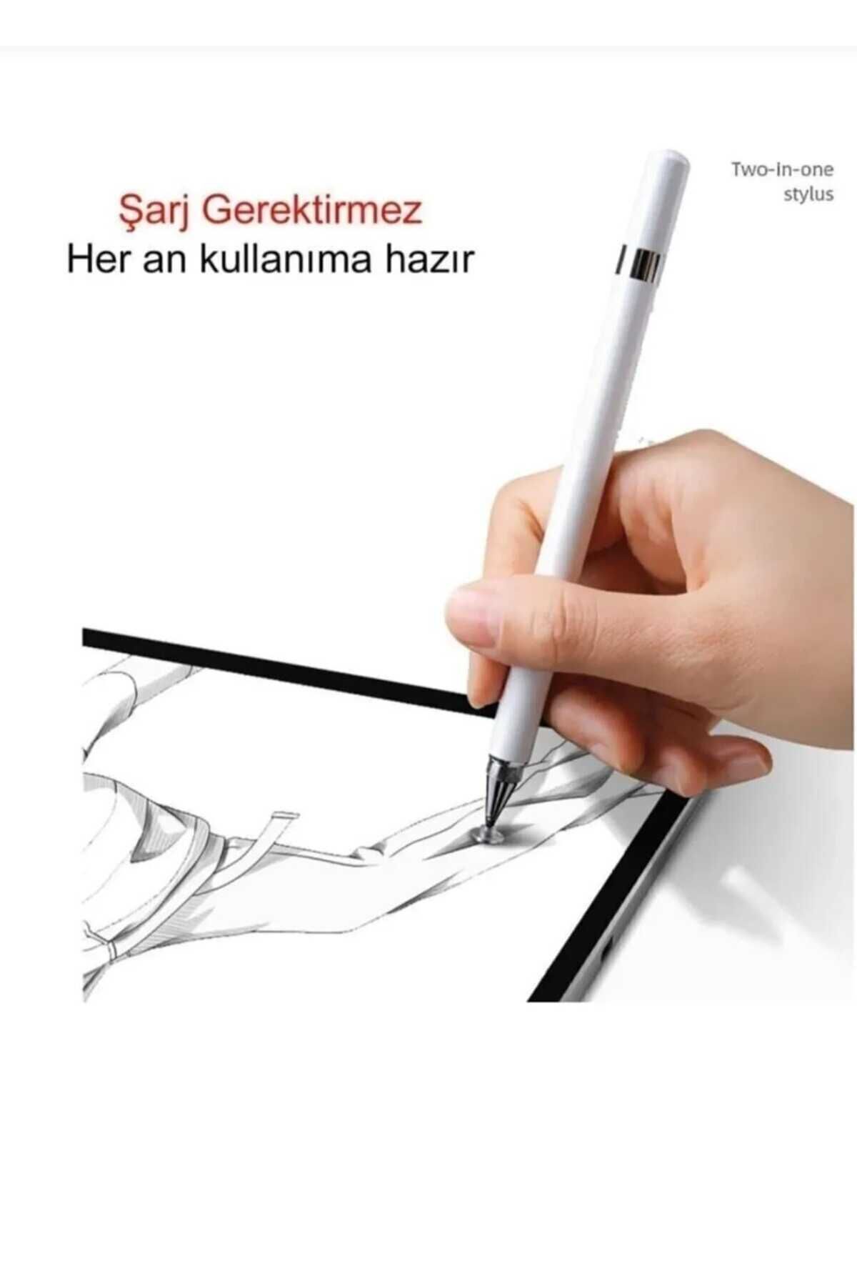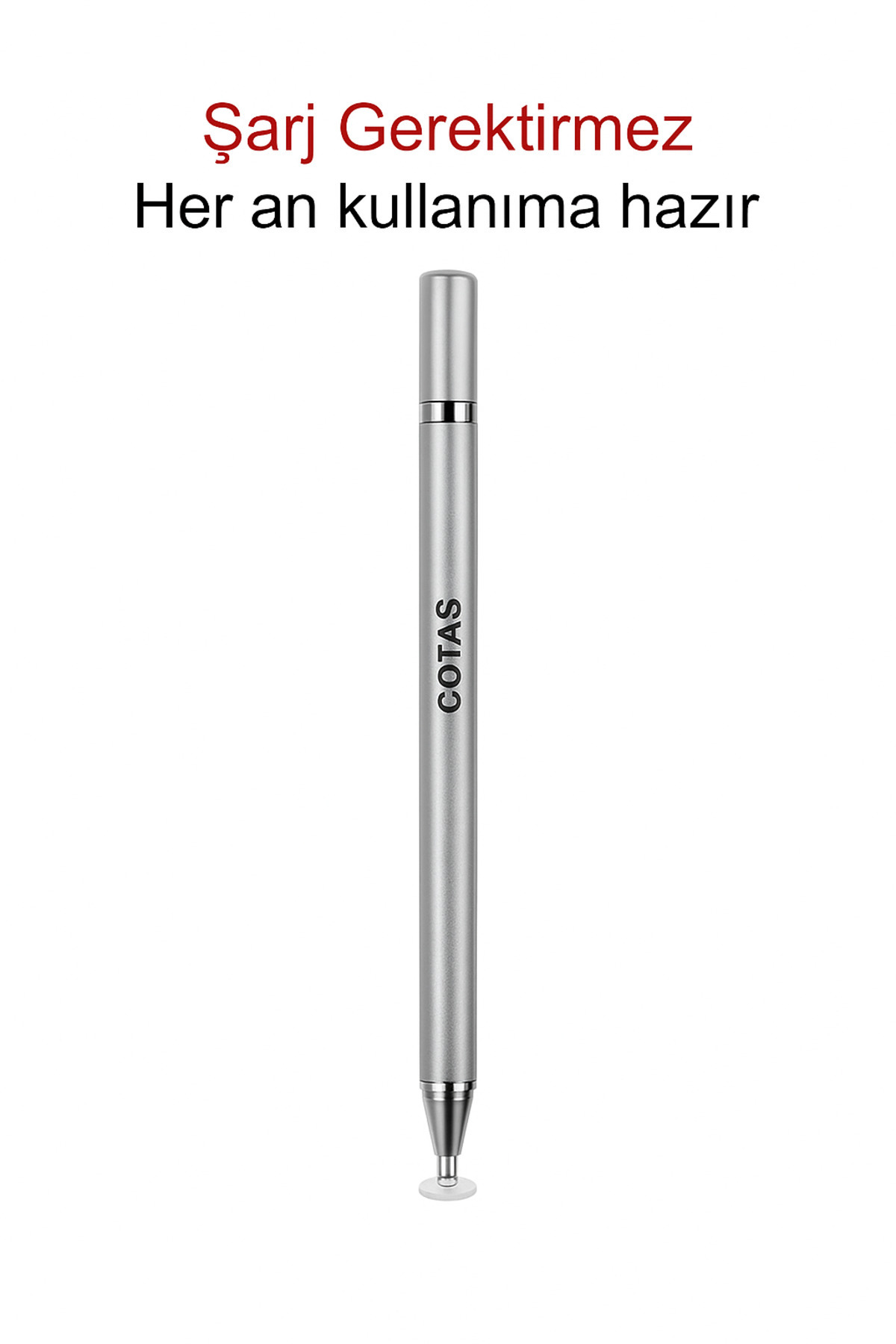 2-in-1 Stylus Kalem – Şarj Gerektirmez Gümüş Renk, iOS ve Android Tüm Cihazlarla Uyumlu