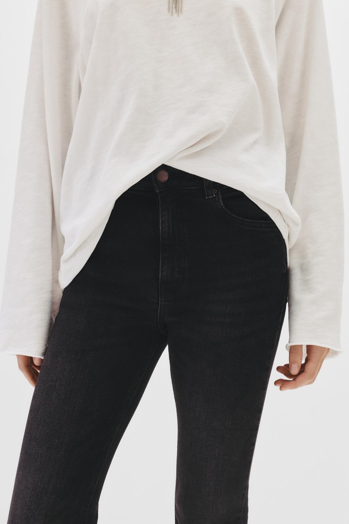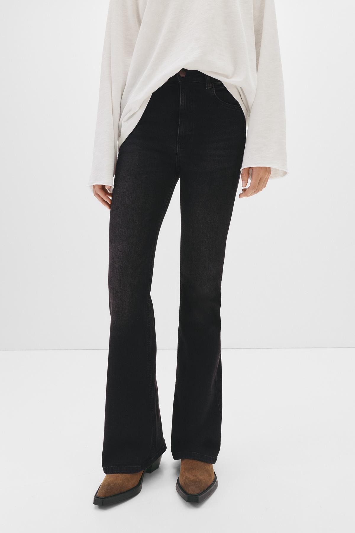 KESİM: Yüksek KUMAŞ: Esnek Yüksek belli, beş cepli, kemer köprülü, düğme ve fermuar kapamalı, pamuklu çan paça jean.