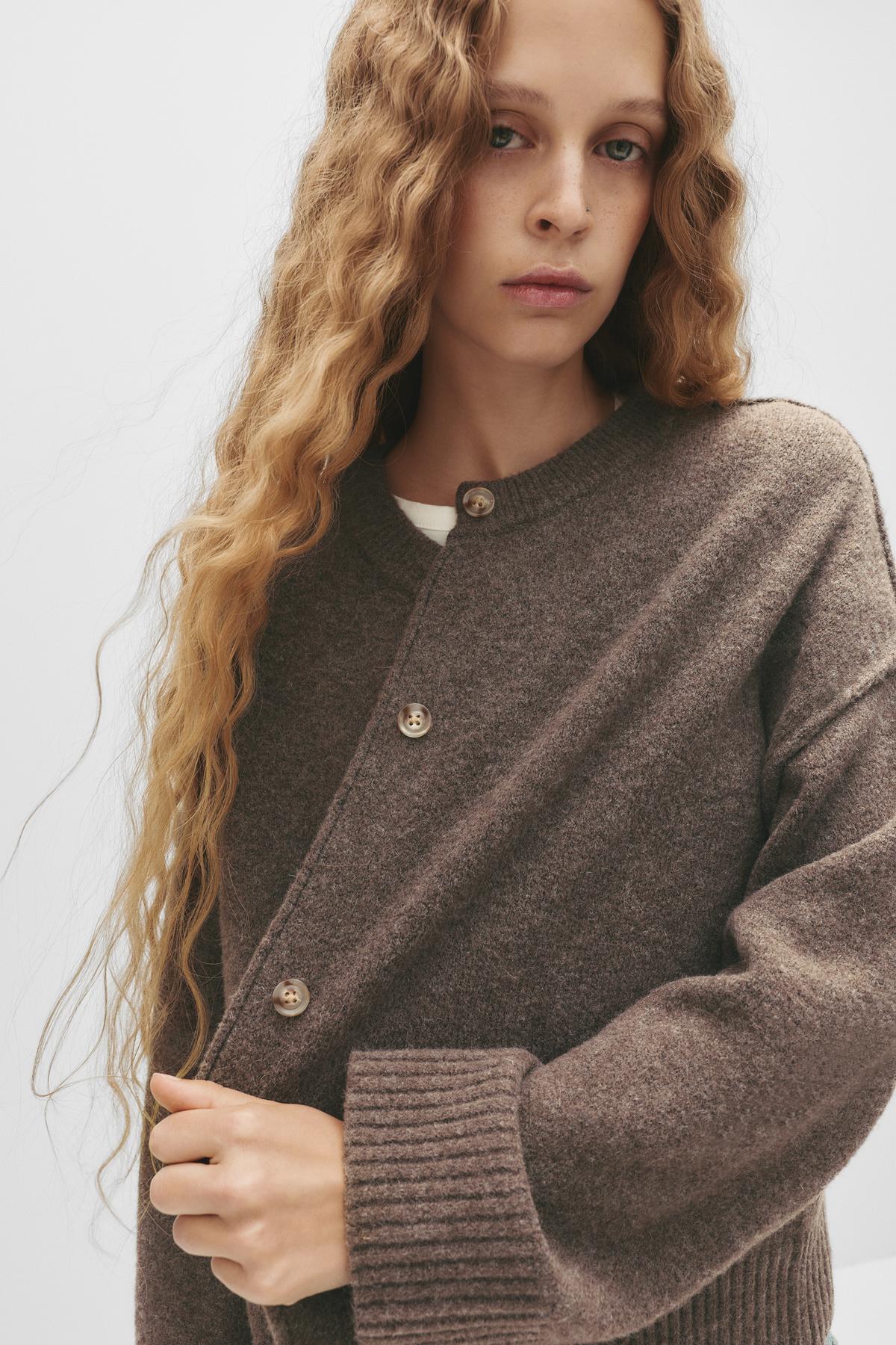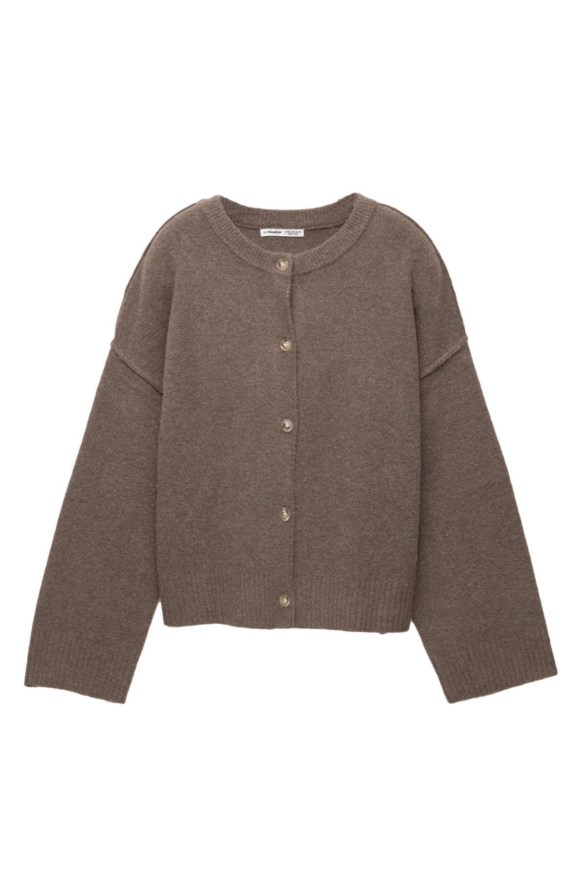 Önden düğme kapamalı ve uzun reglan kollu, soft örgü hırka.