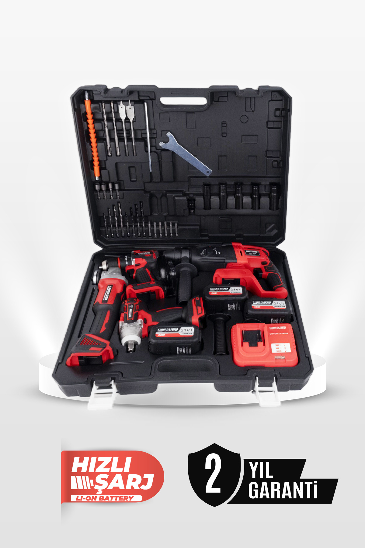 Profesyonel 21V Akülü Vidalama Matkap Kırıcı Delici Hilti Taşlama Somun Sökme 4'lü Set