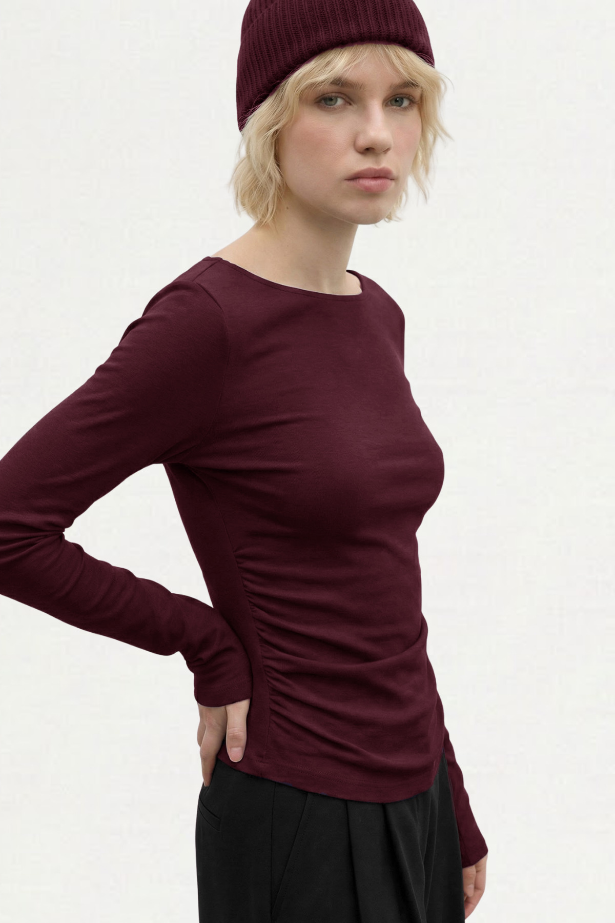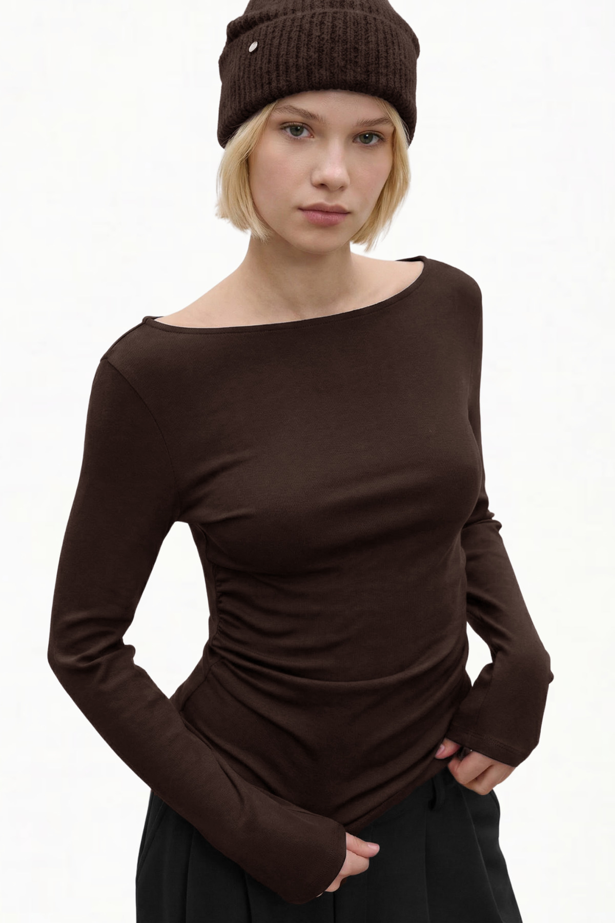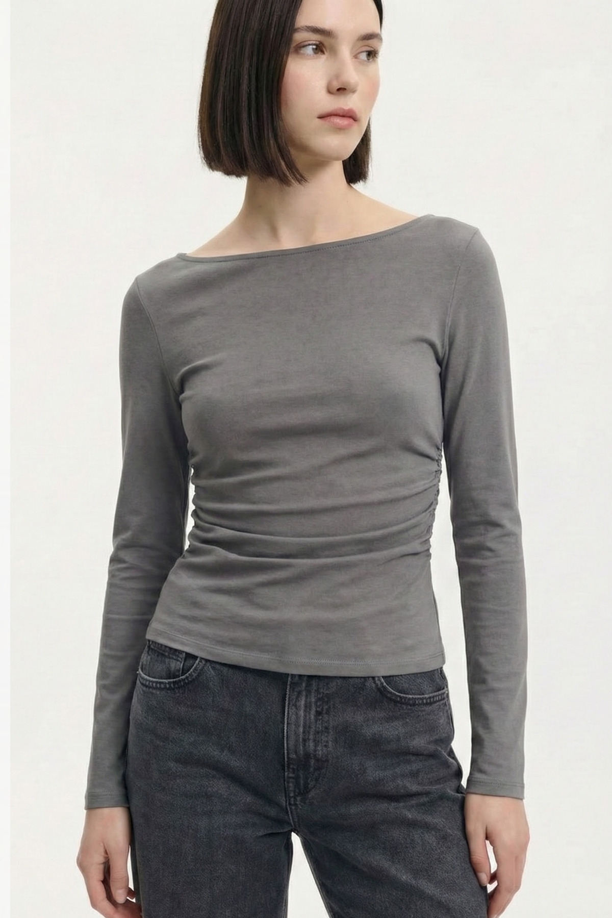 Kayık yaka ve uzun kollu, Yanları Büzgü Detaylı Basic Bluz