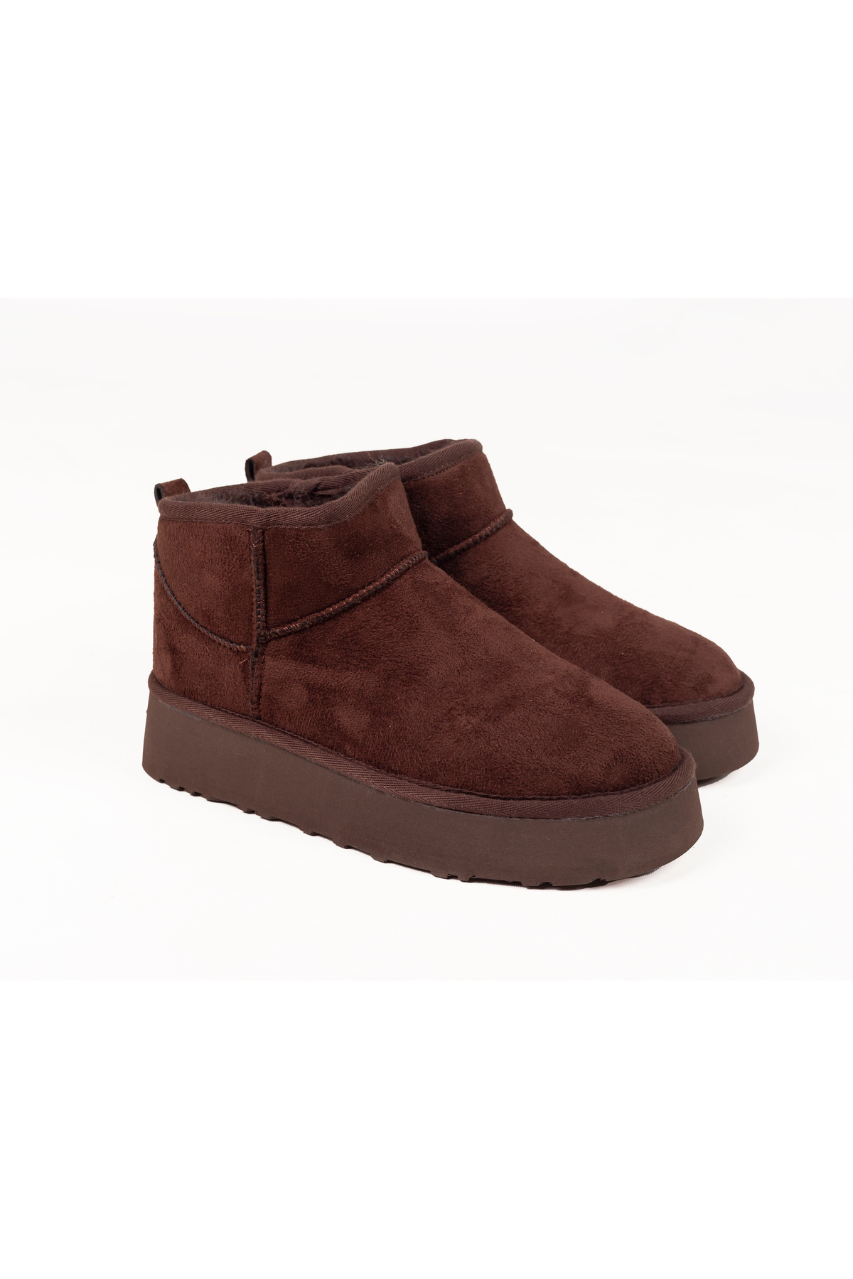 - Kış aylarında ayaklarınızı sıcak tutacak içi kürklü kahverengi süet bot.