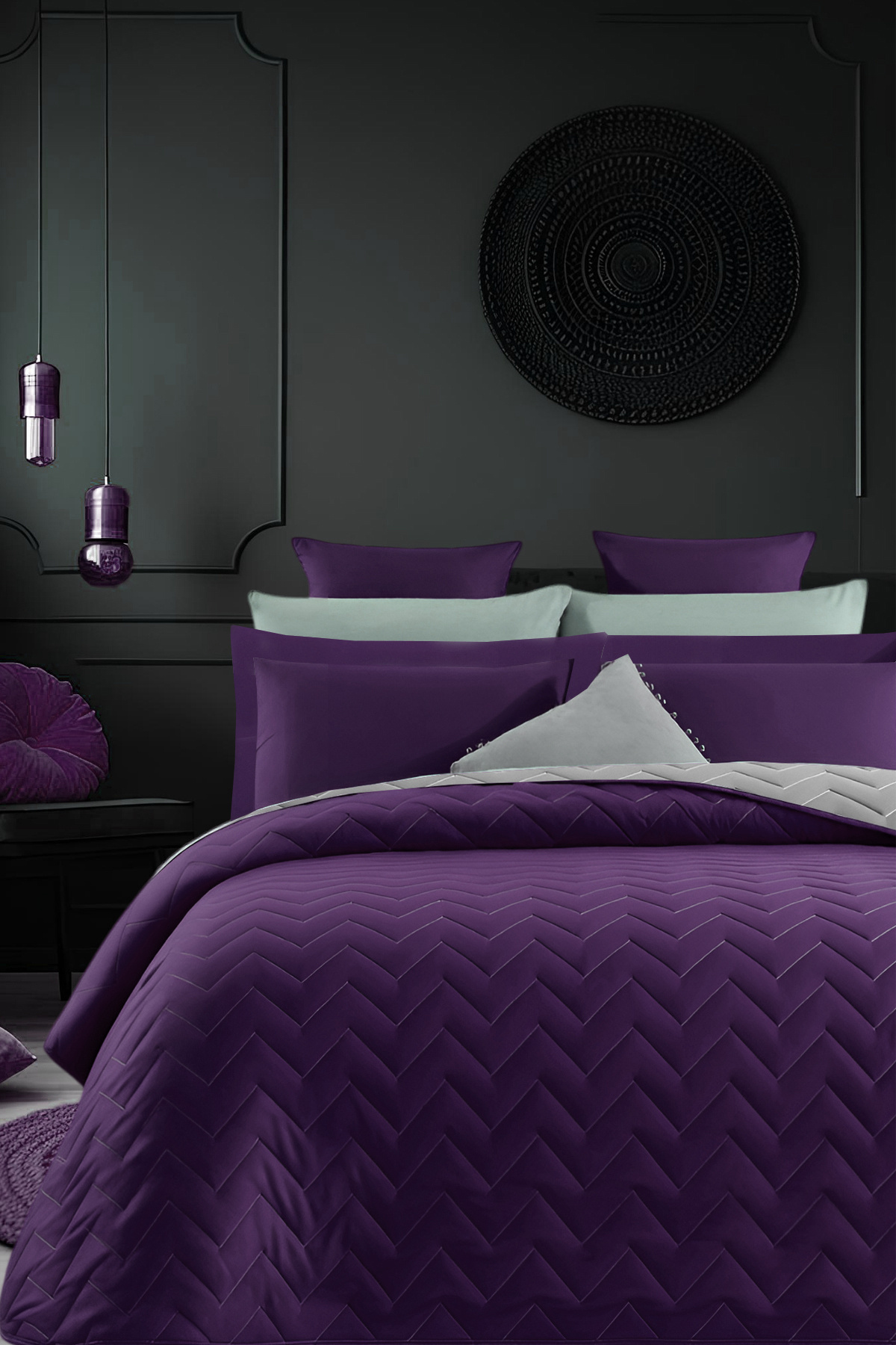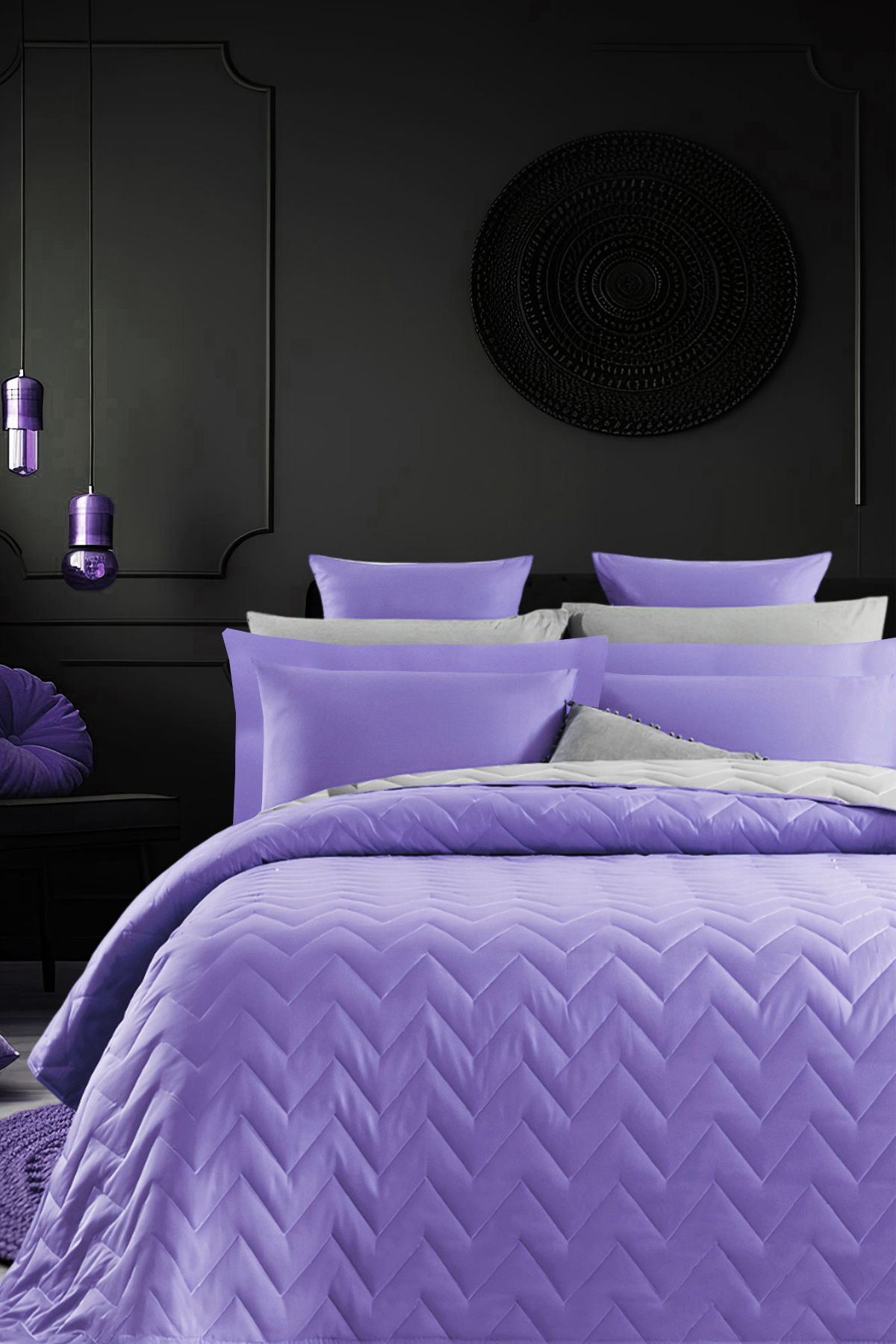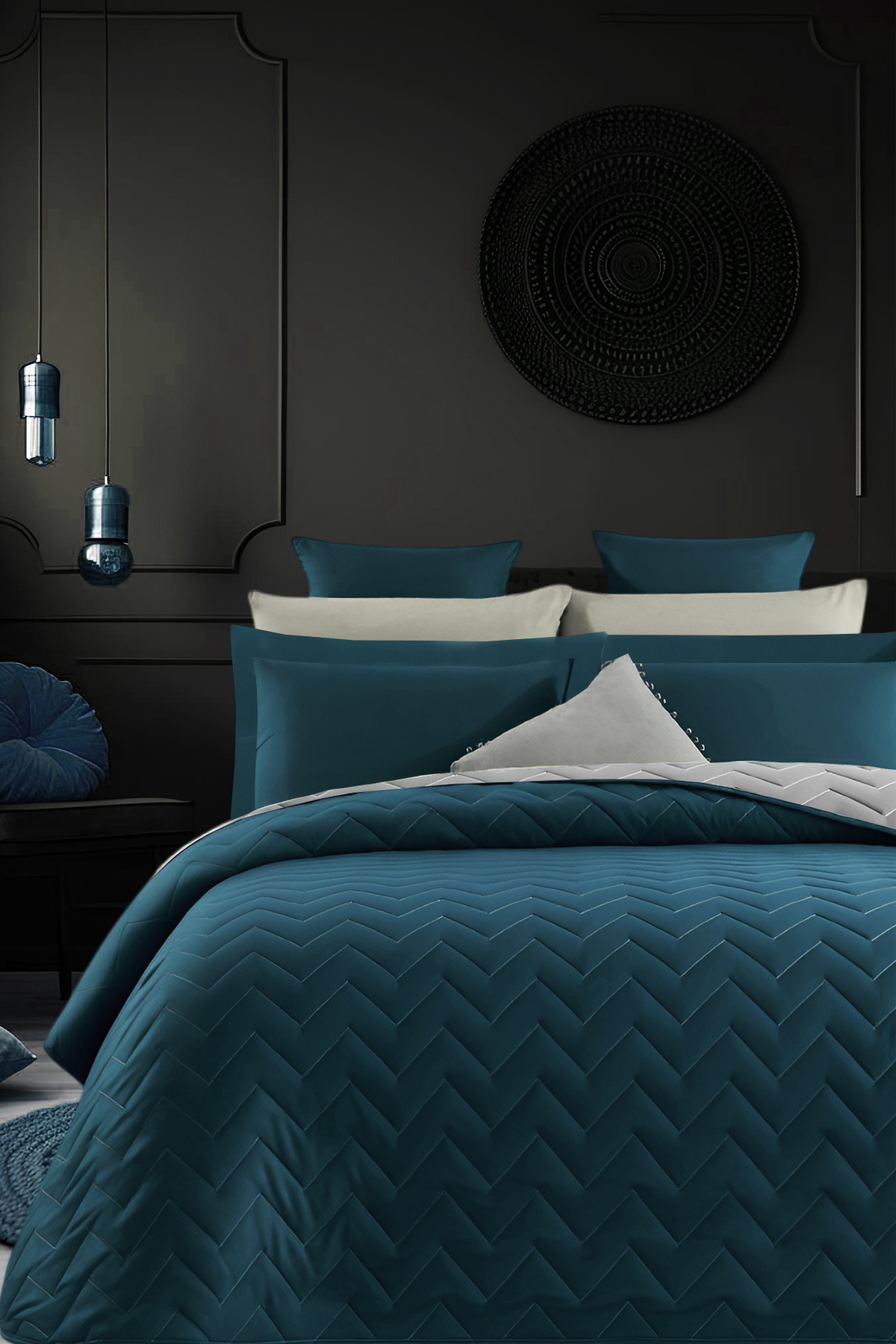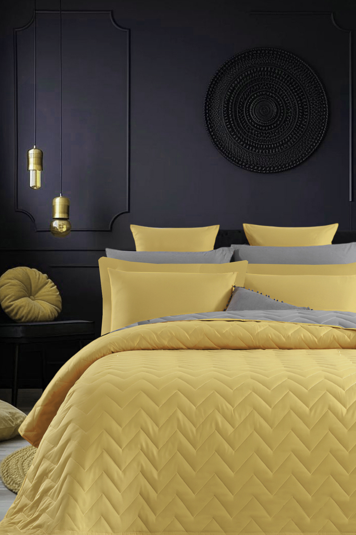 Zarif rengiyle, her yatak odasına şıklık katan çift kişilik kapitone yatak örtüsü seti.