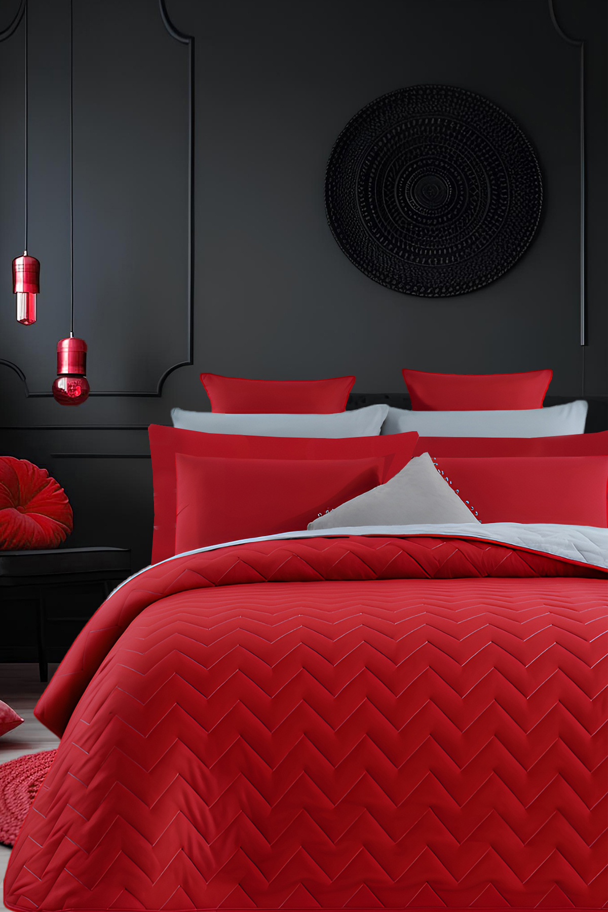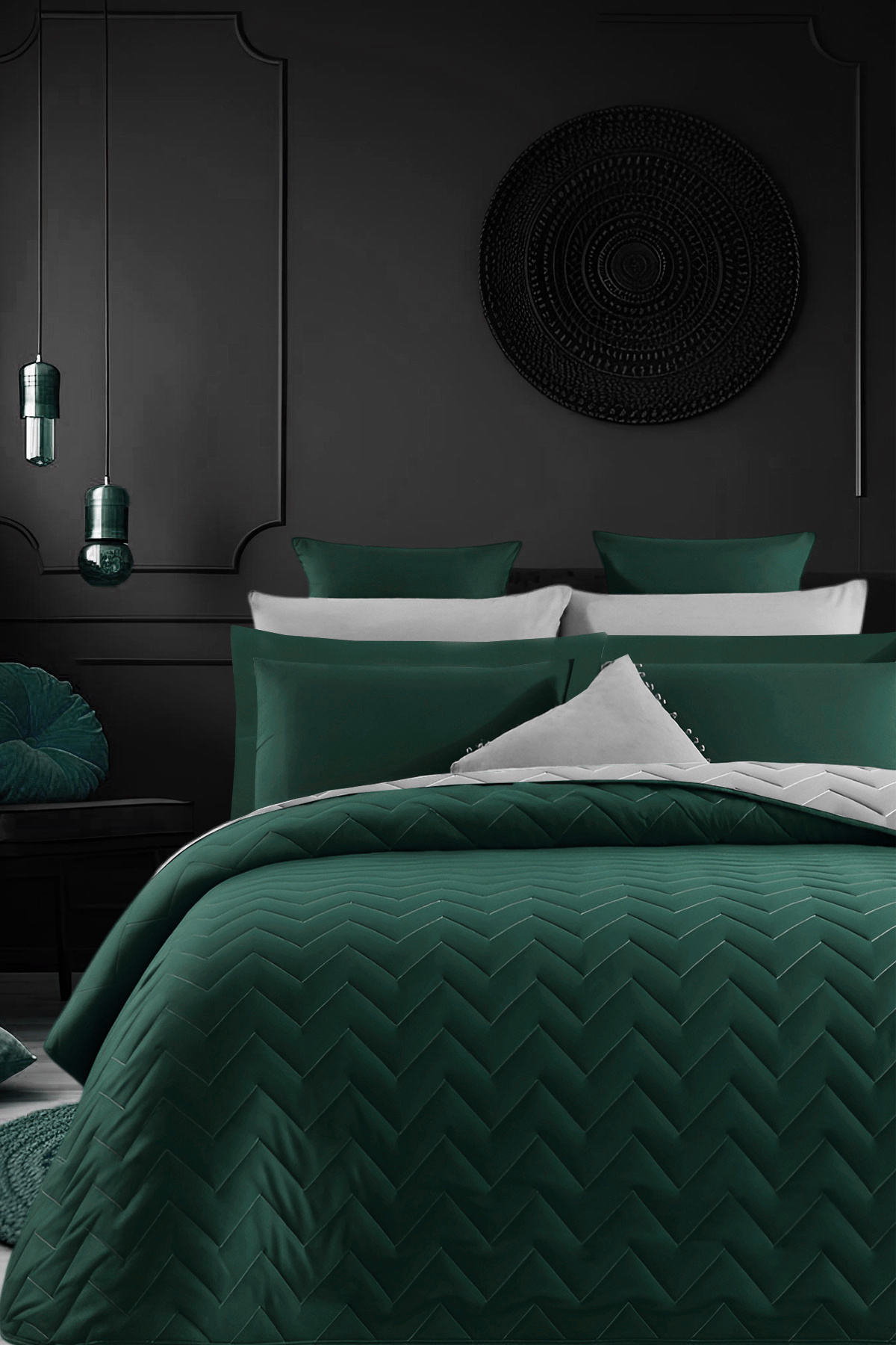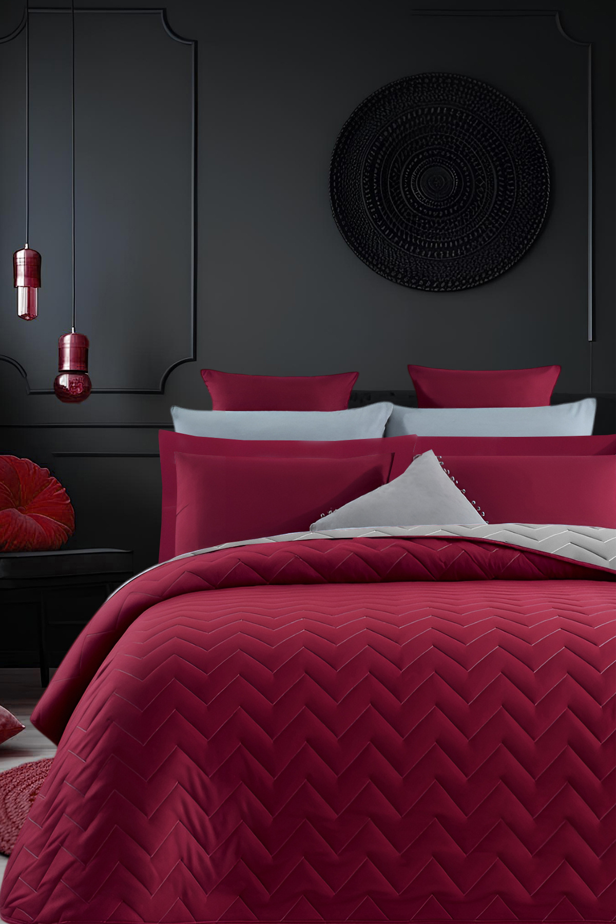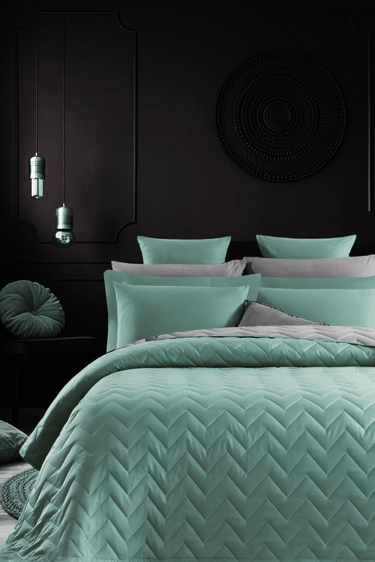 Zarif rengiyle, her yatak odasına şıklık katan çift kişilik kapitone yatak örtüsü seti.